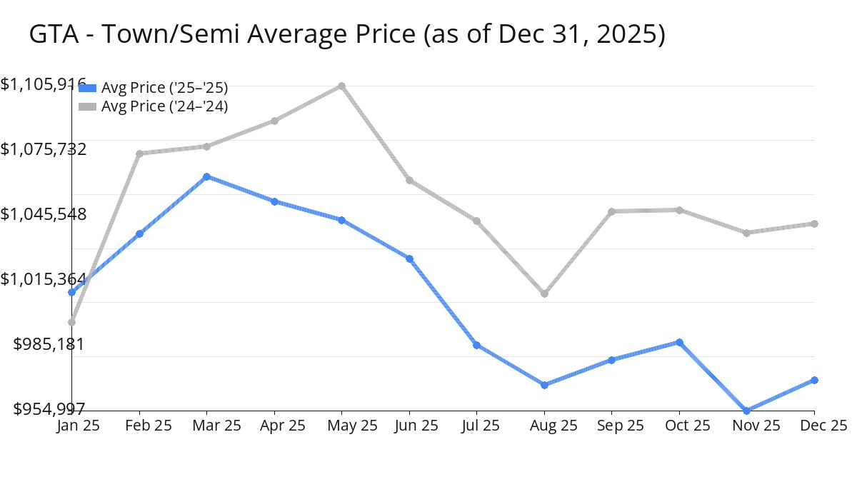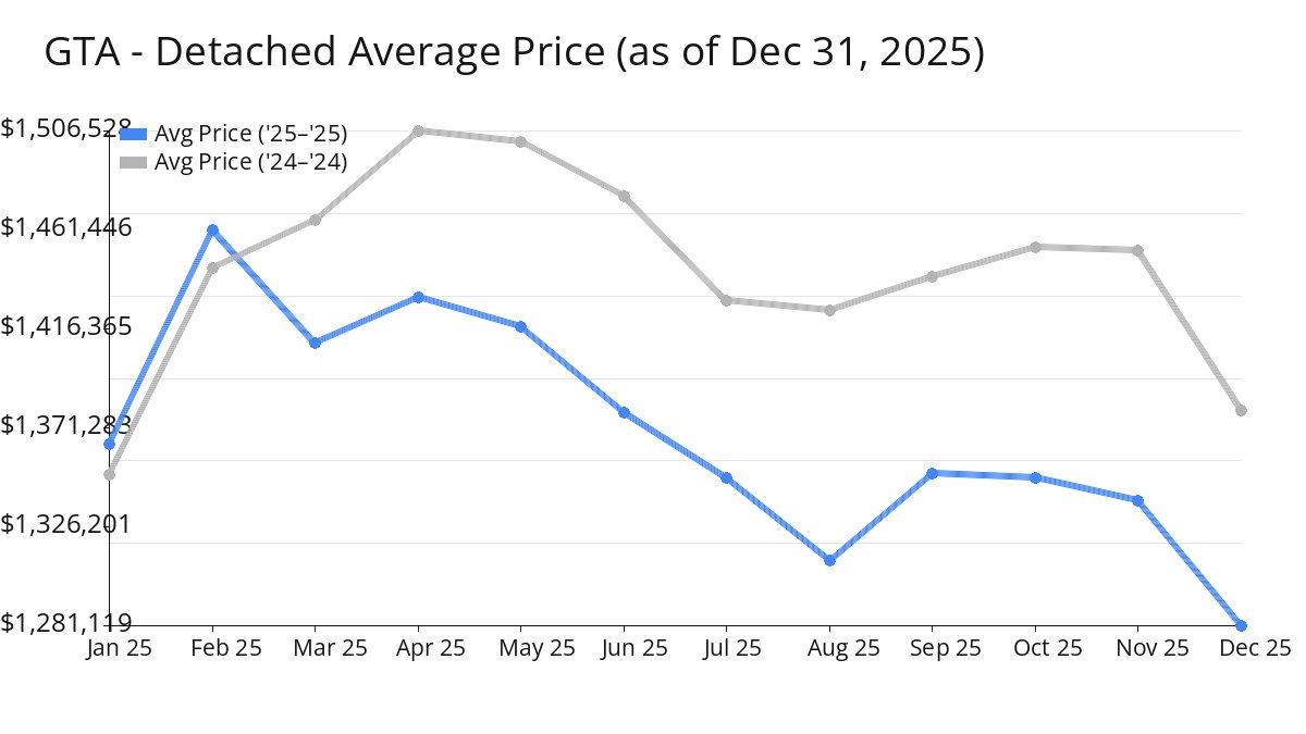 Average Price of GTA Homes decreased in Dec 2025
