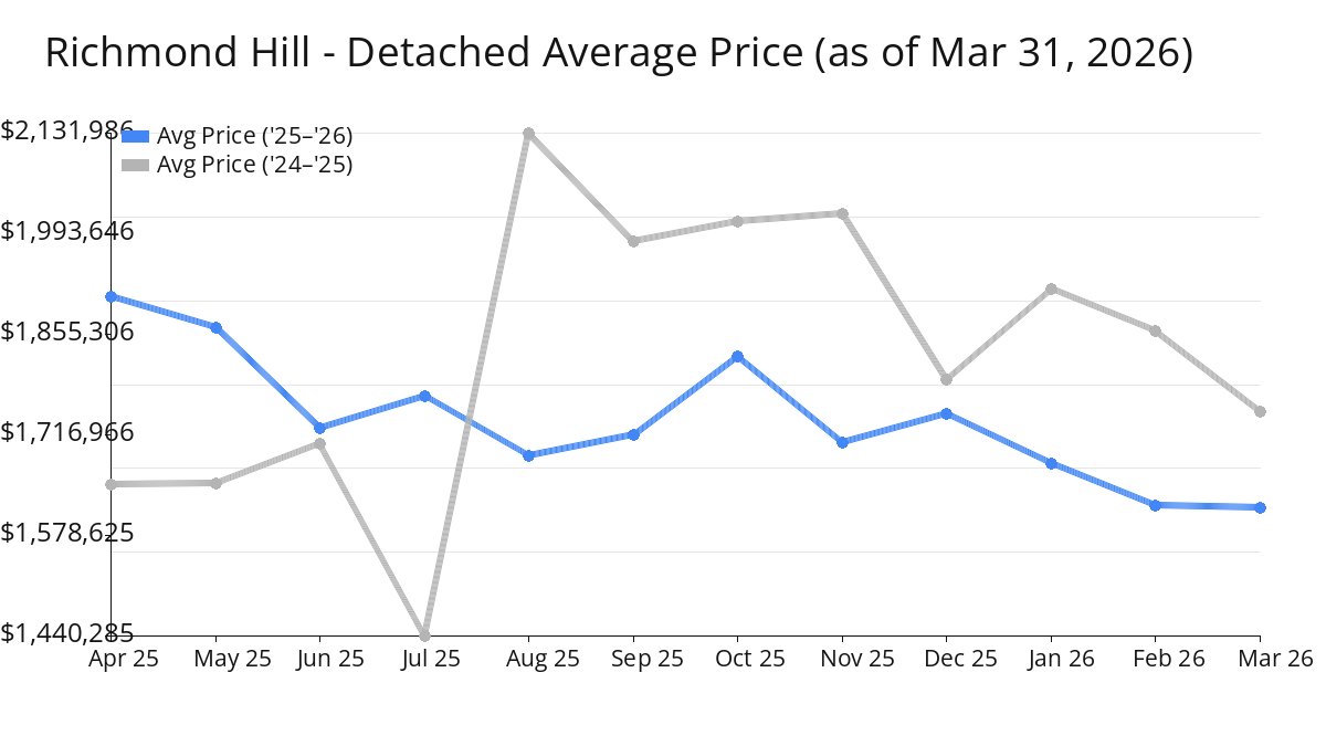 Average Price of Richmond Hill Homes decreased in Mar 2026