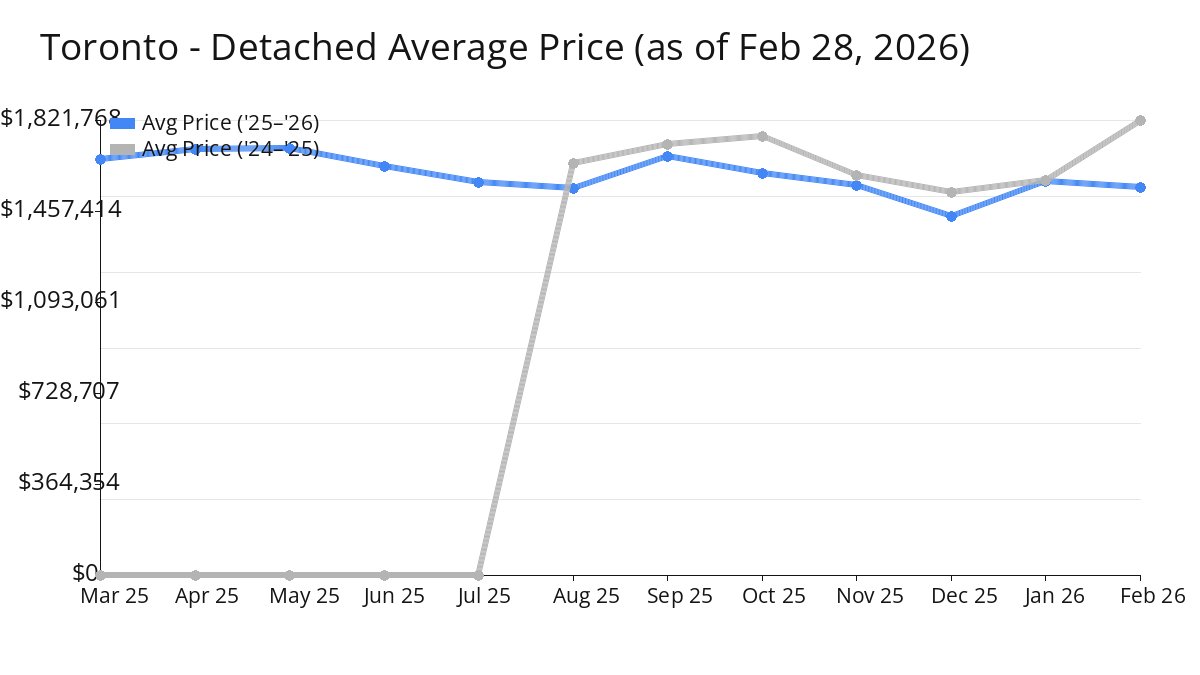 Average Price of Toronto Homes increased in Feb 2026