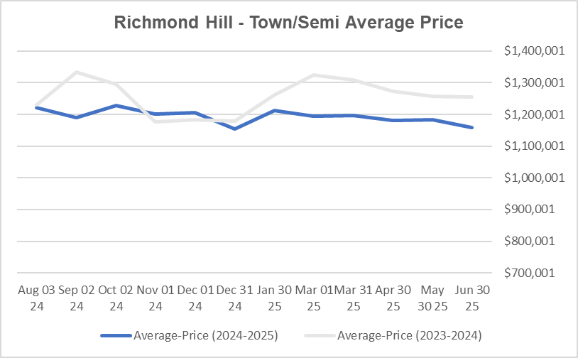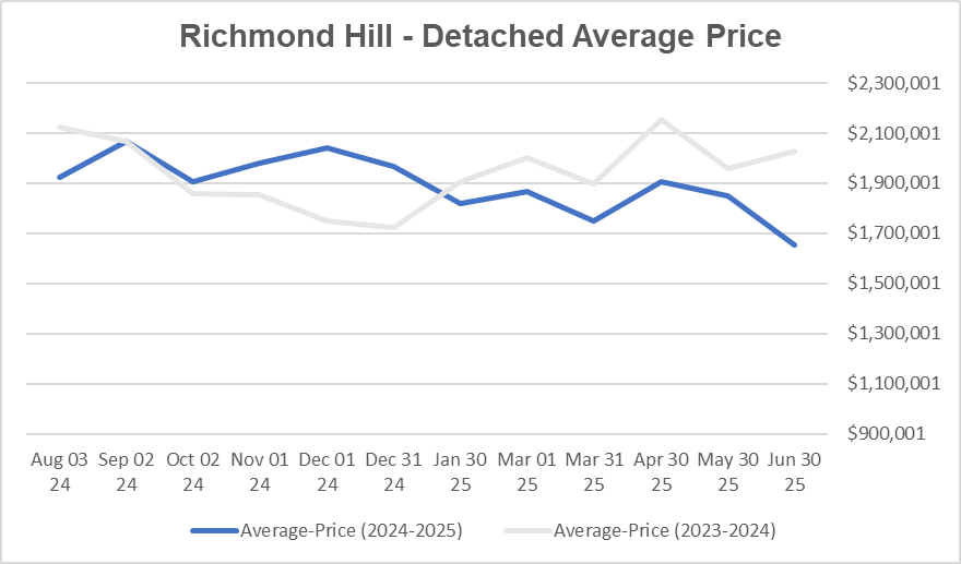 Richmond Hill Freehold Home Average Prices decreased in June 2025!