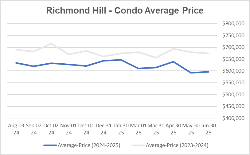 Richmond Hill Freehold Home Average Prices decreased in June 2025