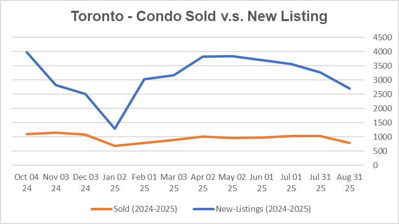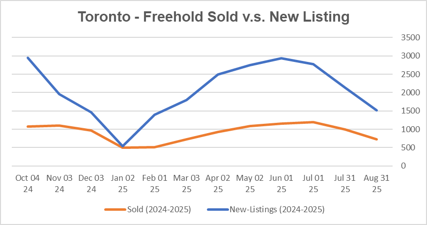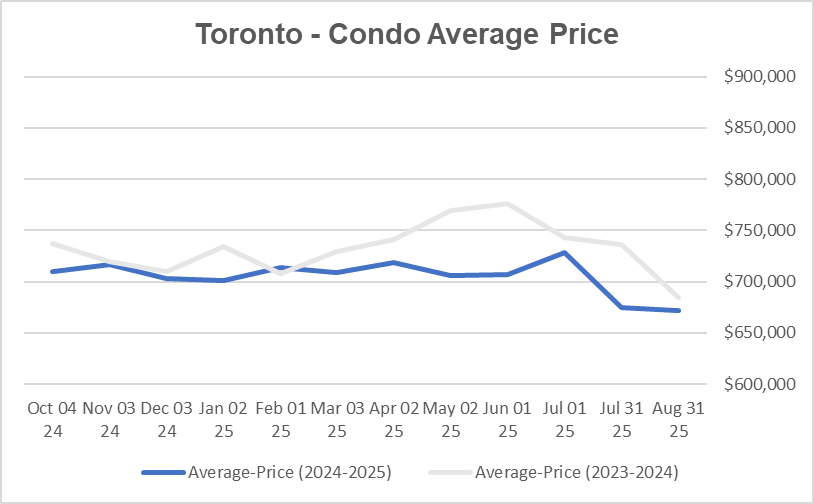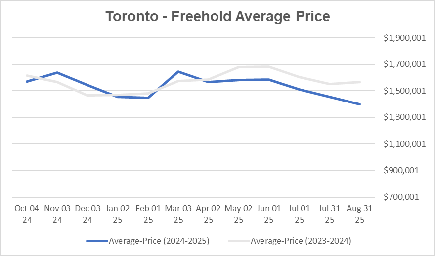 The average price of Toronto Homes decreased in Aug 2025