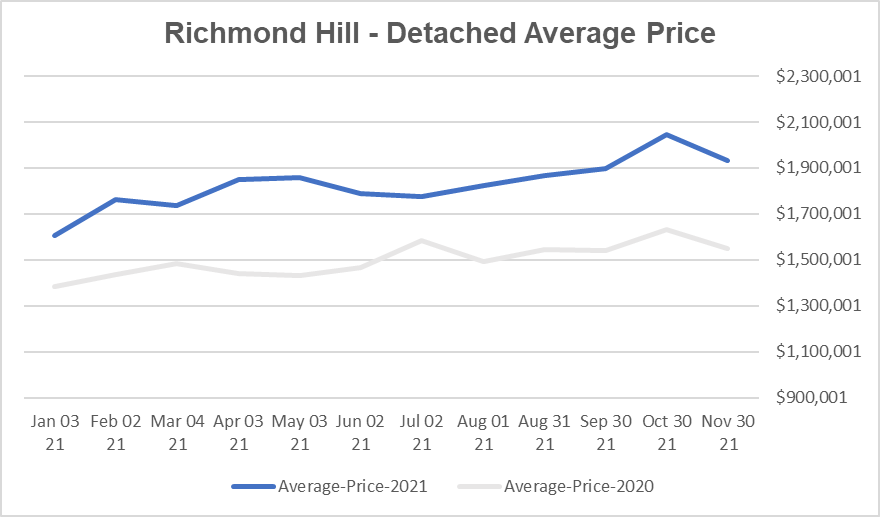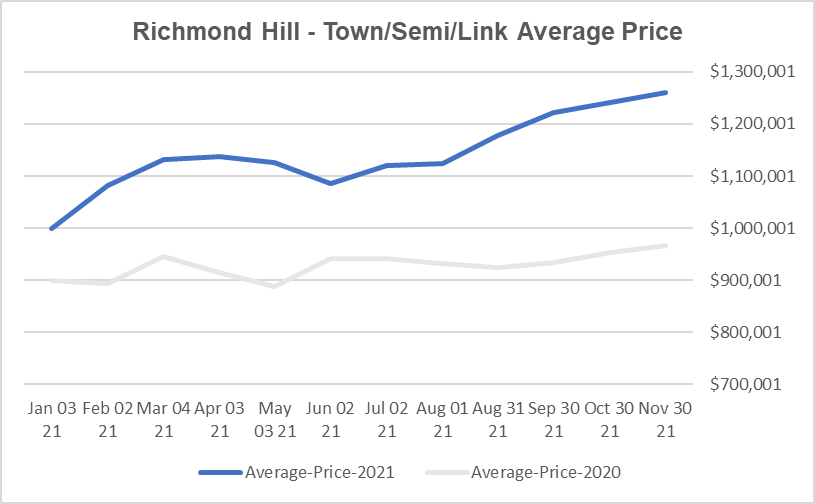 2021年11月列治文山独立房均价跌,半独立镇屋房屋均价再次突破历史新高!