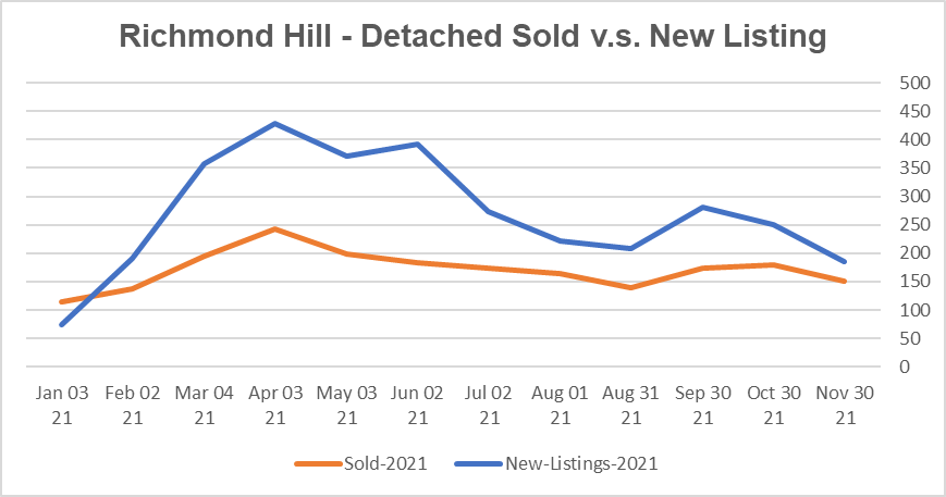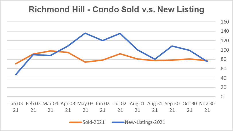 公寓市场目前是强劲卖家市场。列治文山公寓平均出售时间是15天。公寓均价同比今年10月没有变化,环比去年11月上升29.4%。新上市房源较10月下降了24.2%,比去年11月下降了34.8%。