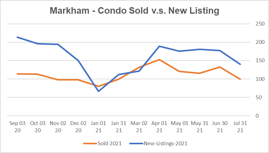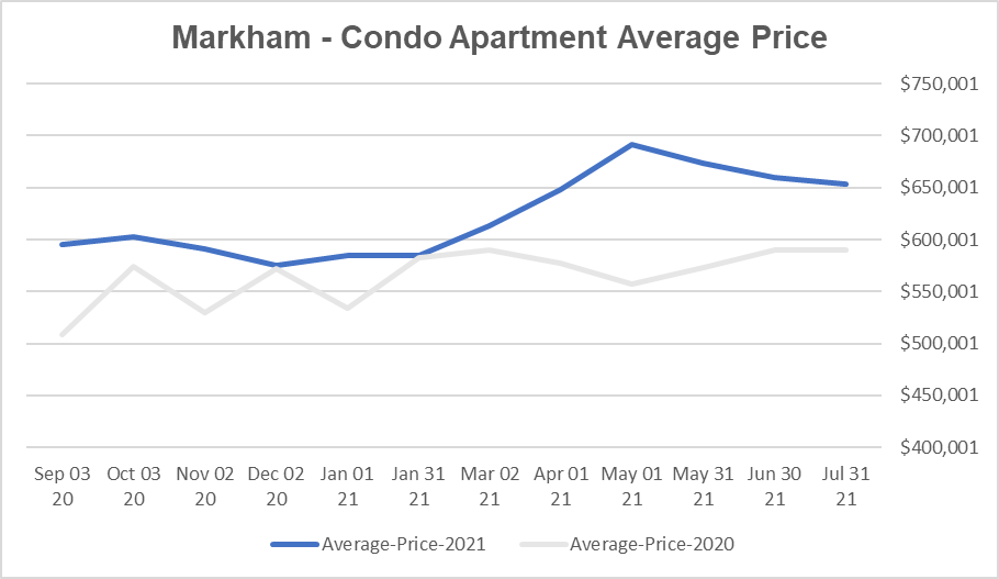 万锦公寓市场仍然非常强劲。公寓的平均价格与 6 月份相比上涨了 5%,与去年 7 月份相比上涨了 17%。已售房源减少了 19%,但新房源减少了 30%。在租赁市场上,较小单位的需求非常强劲。自今年 1 月以来,500 至 700 平方英尺的平均租金上涨了 10%。