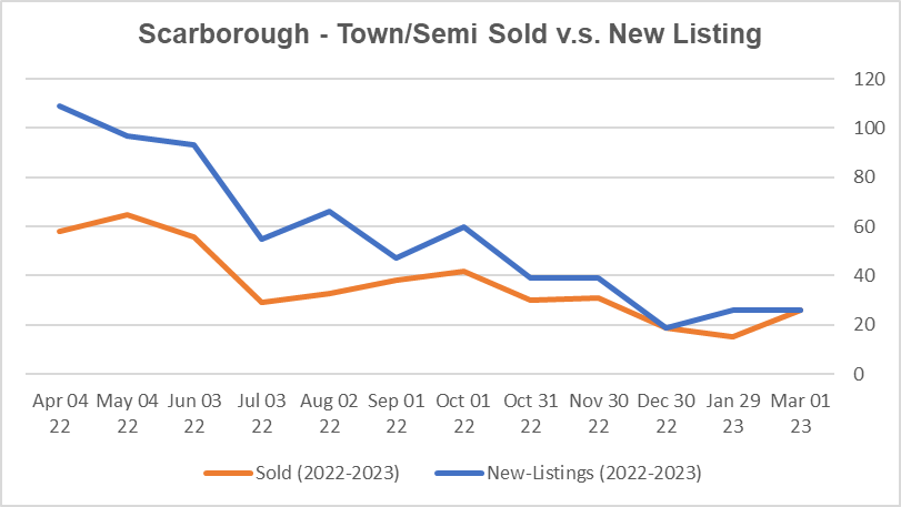 公寓市场目前是卖家市场。士嘉堡公寓平均出售时间是29天。公寓均价环比今年1月没有变化,同比去年2月下降19.1%。新上市房源较1月增加了19.7%,比去年2月下降了38.5%。