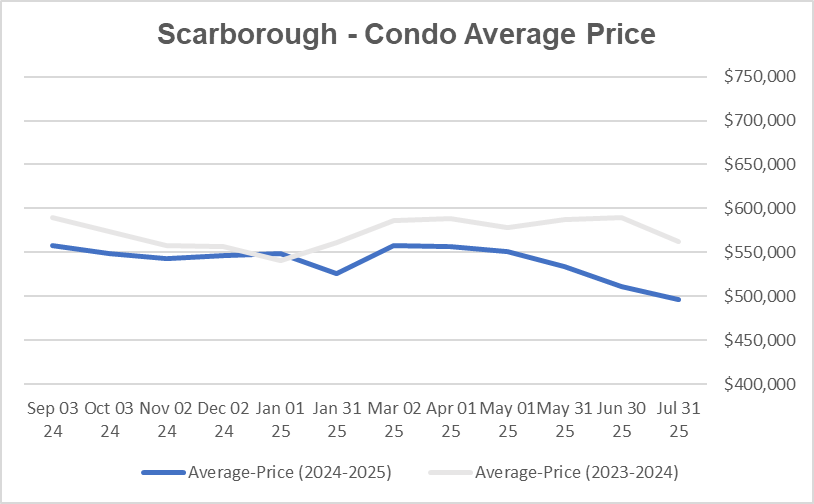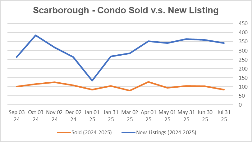 公寓市场目前是强劲买家市场。士嘉堡公寓平均出售时间是39天。公寓均价环比今年6月下降2.7%,同比去年7月下降11.6%。新上市房源较6月下降了5.0%,比去年7月上升了11.0%。
