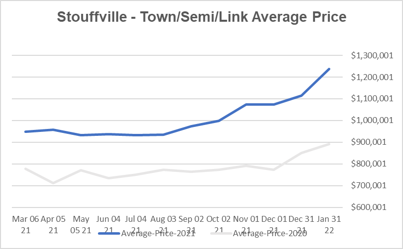 Stouffville2022年1月半独立镇屋价均价创下历史新高!