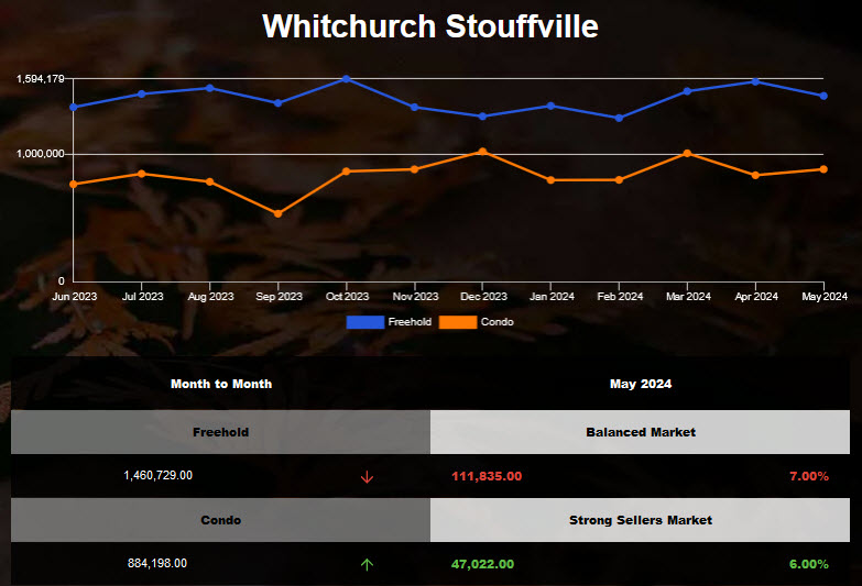 The average price of Stouffville Freehold Detached Housing decreased in May 2024!