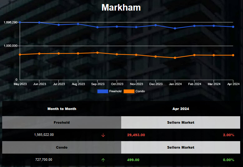 The average price for Markham Freehold Homes was down in Mar 2024!