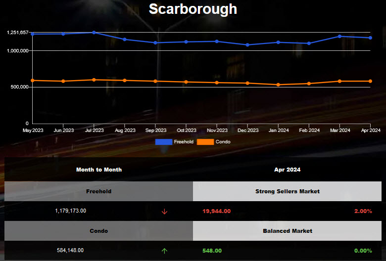 The average price of Scarborough Townhome increased in Mar 2024!