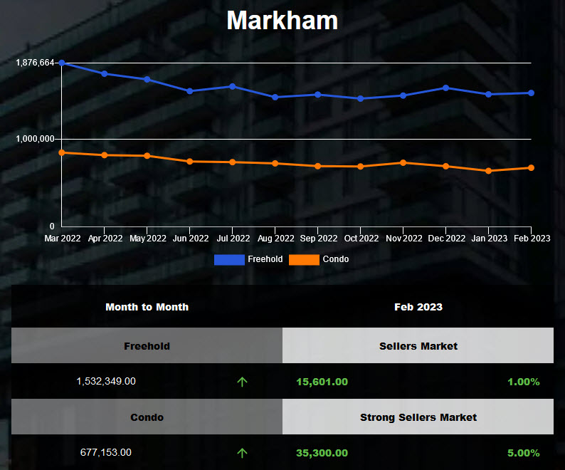 Markham Attached Town Semi and Condo average housing price was up in Jan 2023!