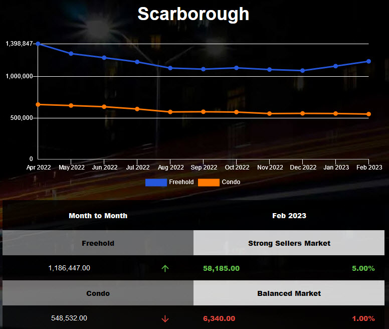 Scarborough detached and attached average home price increased in Feb 2023!