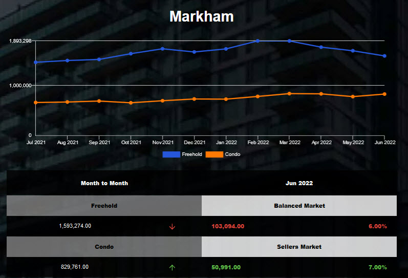 Markham freehold average housing price in May 2022 declined to last Oct level!
