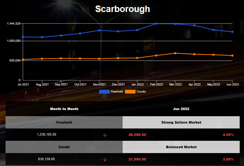 Scarborough average home price declined in May 2022!