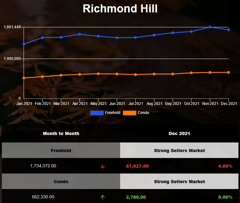 Richmond Hill Detached Housing Price dropped but Semi Town Housing prices hit another record high in Nov 2021!