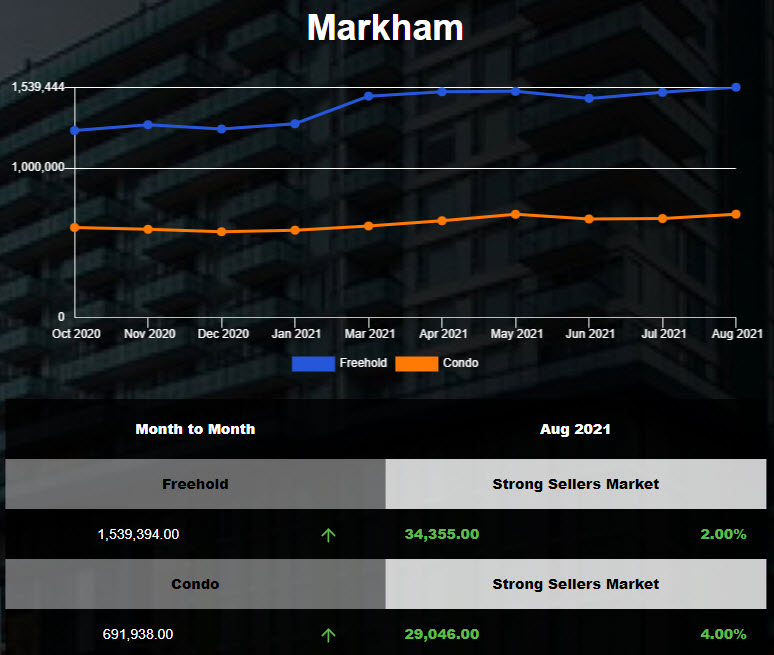 Markham Semi and Town Home prices hit the record high in Aug 2021!