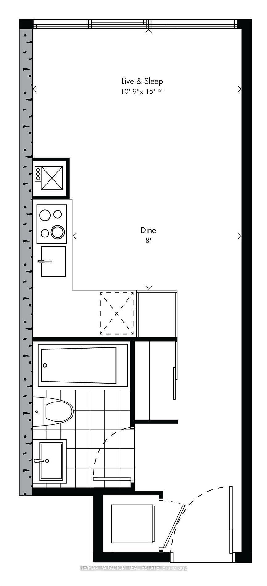 房号703 500-599sqft 朝向: 南
