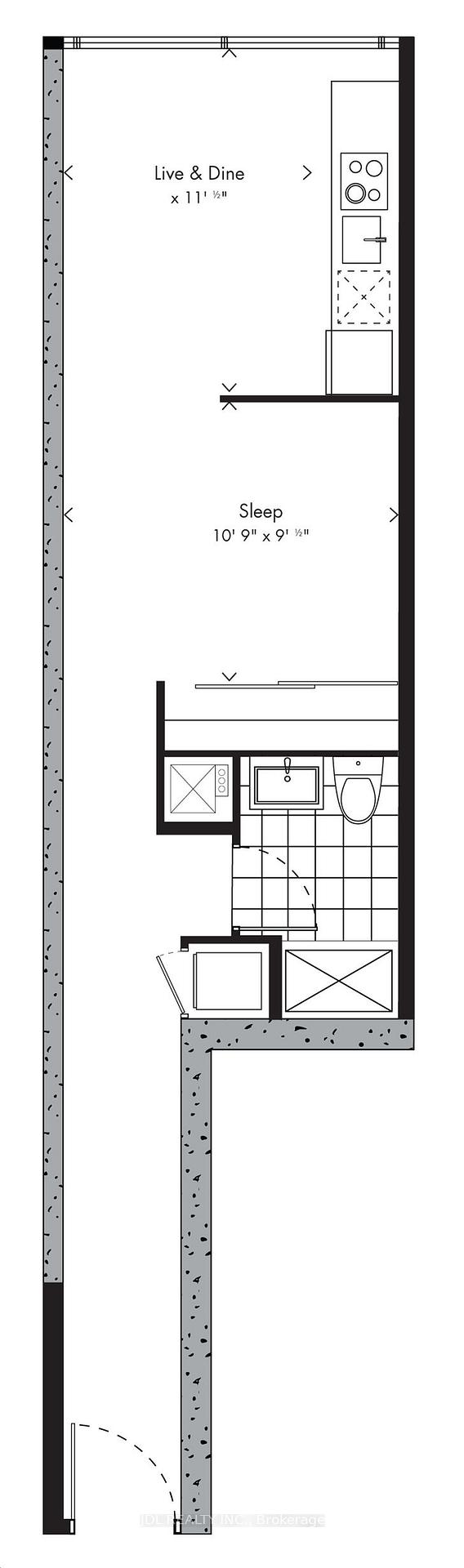 房号703 500-599sqft 朝向: 南