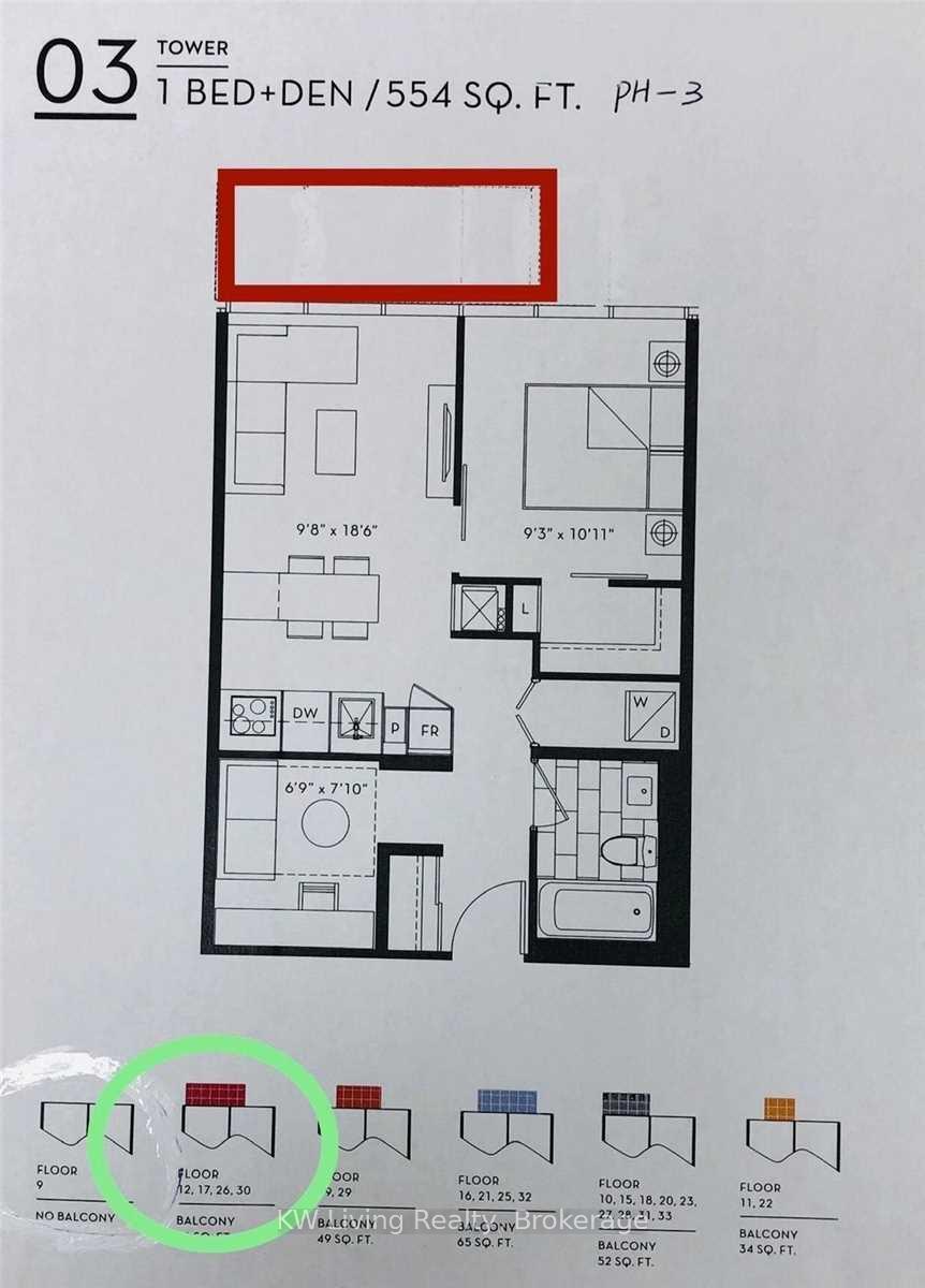 房号Ph03 500-599sqft 朝向: 南