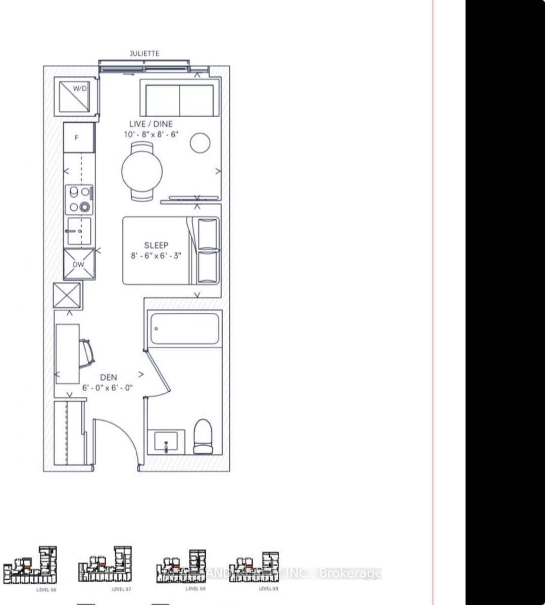 房号804 500-599sqft 朝向: 南