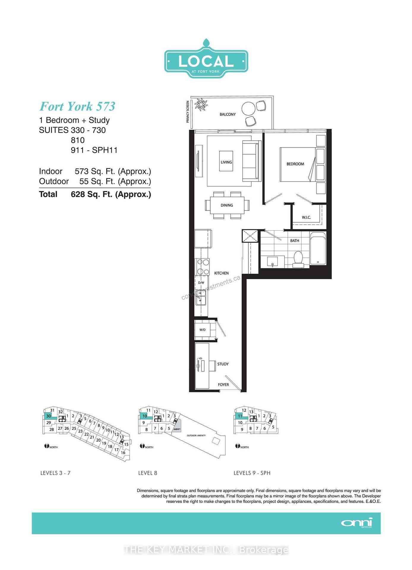 房号730 500-599sqft 朝向: 南