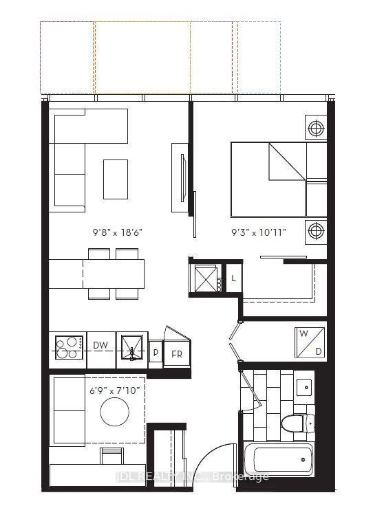 房号910 600-699sqft 朝向: 南