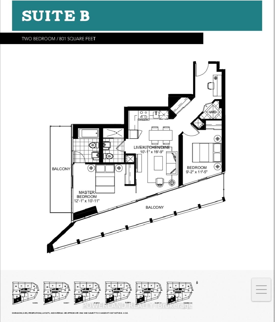 房号701 600-699sqft 朝向: 南