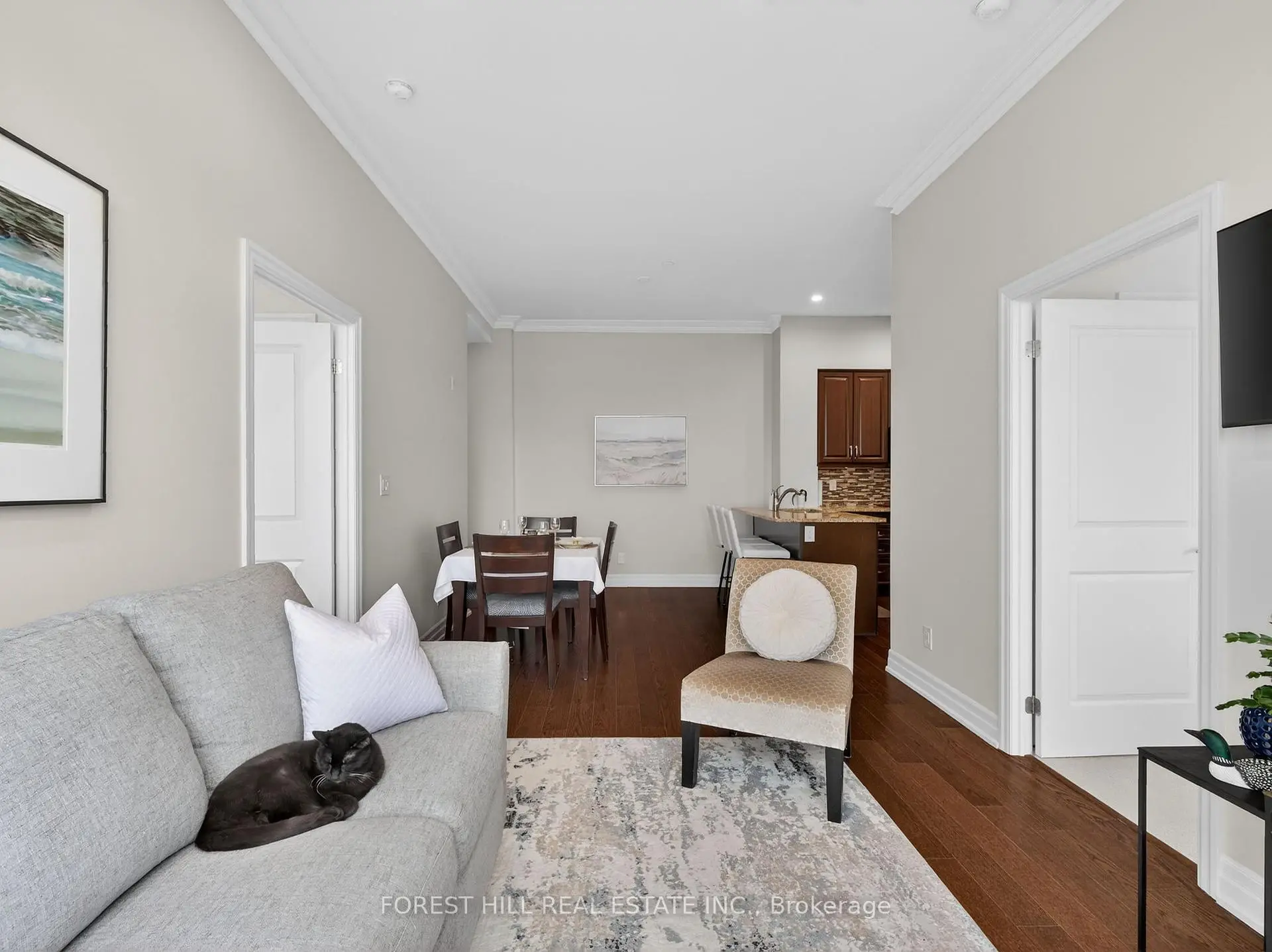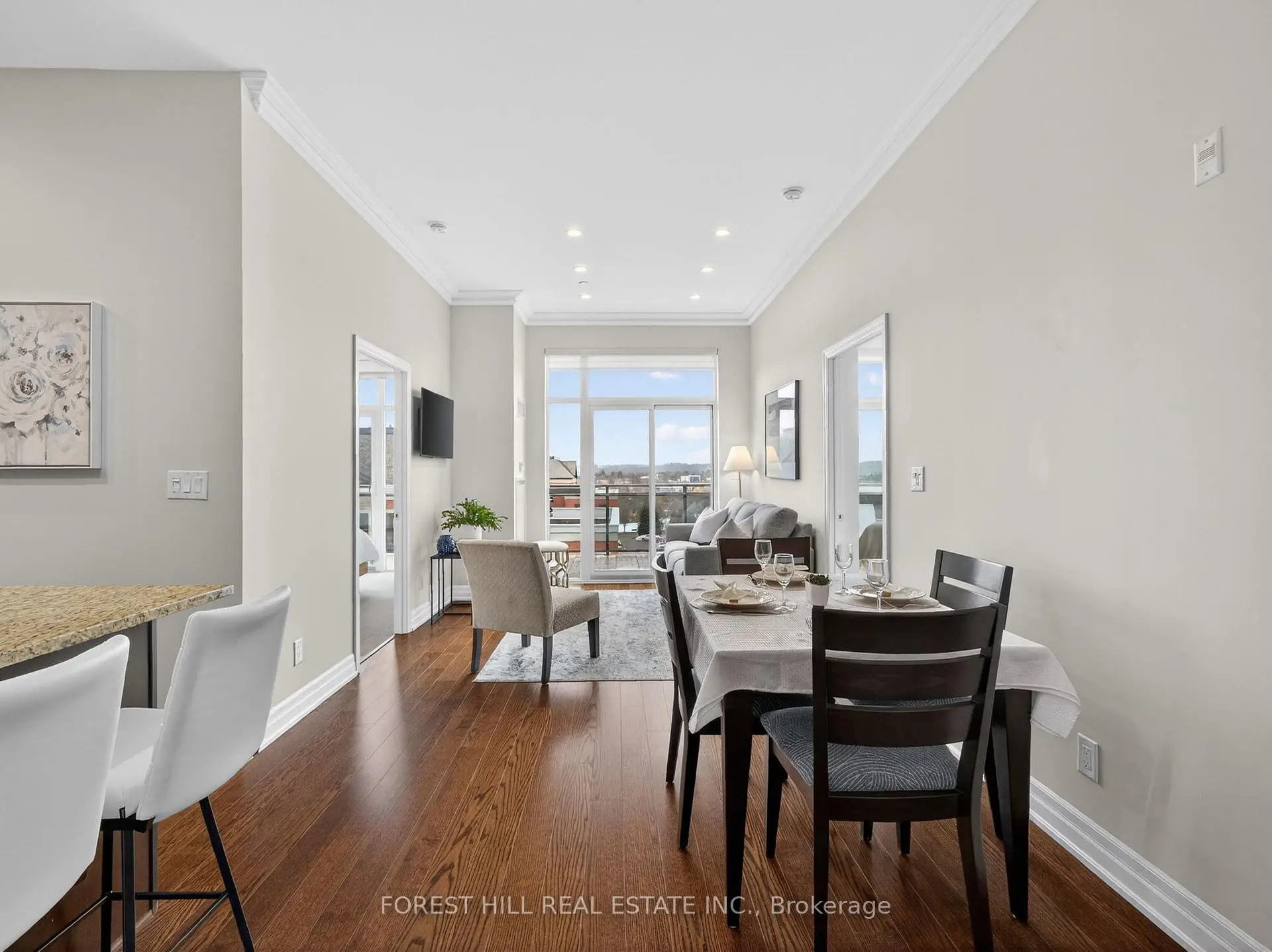 | Living Rm | 7.04x3.13 | Hardwood Floor, W/O To Balcony, Crown Moulding |