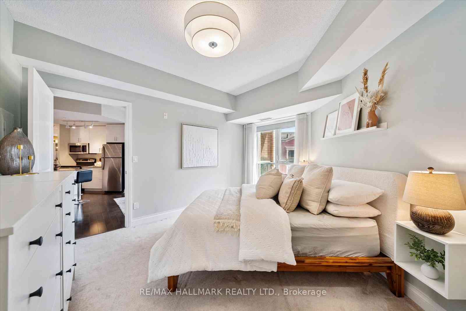***OPEN HOUSE SUNDAY NOVEMBER 23@ 2-4 pm****Experience the charm of Main Street living in this bright and stylish boutique condo, where modern design meets small-town warmth. With soaring 9-foot ceilings, southern exposure, and an open-concept layout, this suite offers both sophistication and comfort in one of Markhams most desirable communities.Ideally located in the heart of historic Main Street Unionville, youre just steps from cozy cafés, boutique shops, bakeries, restaurants, and scenic walking trails. Spend your weekends enjoying farmers markets, sipping coffee on sunny patios, or taking peaceful strolls by Toogood Pond all just minutes from your door.The modern kitchen features stone countertops, a breakfast bar, and stainless steel appliances, opening seamlessly to the bright living and dining area. Step onto your private balcony to take in beautiful southern views and glowing sunsets the perfect spot to unwind at the end of the day.The spacious primary bedroom offers a large window, walk-in closet, and a spa-inspired 4-piece ensuite, combining elegance with everyday comfort. Residents also enjoy access to a rooftop terrace with gardens, patio seating, and BBQs, an unbeatable feature for entertaining or relaxing outdoors.For commuters, the Unionville GO Station is just minutes away, offering easy access to downtown Toronto while allowing you to return home to the peaceful charm of Main Street living.This boutique condo captures the perfect balance of lifestyle and location offering modern luxury, walkable convenience, and a community youll love to call home.