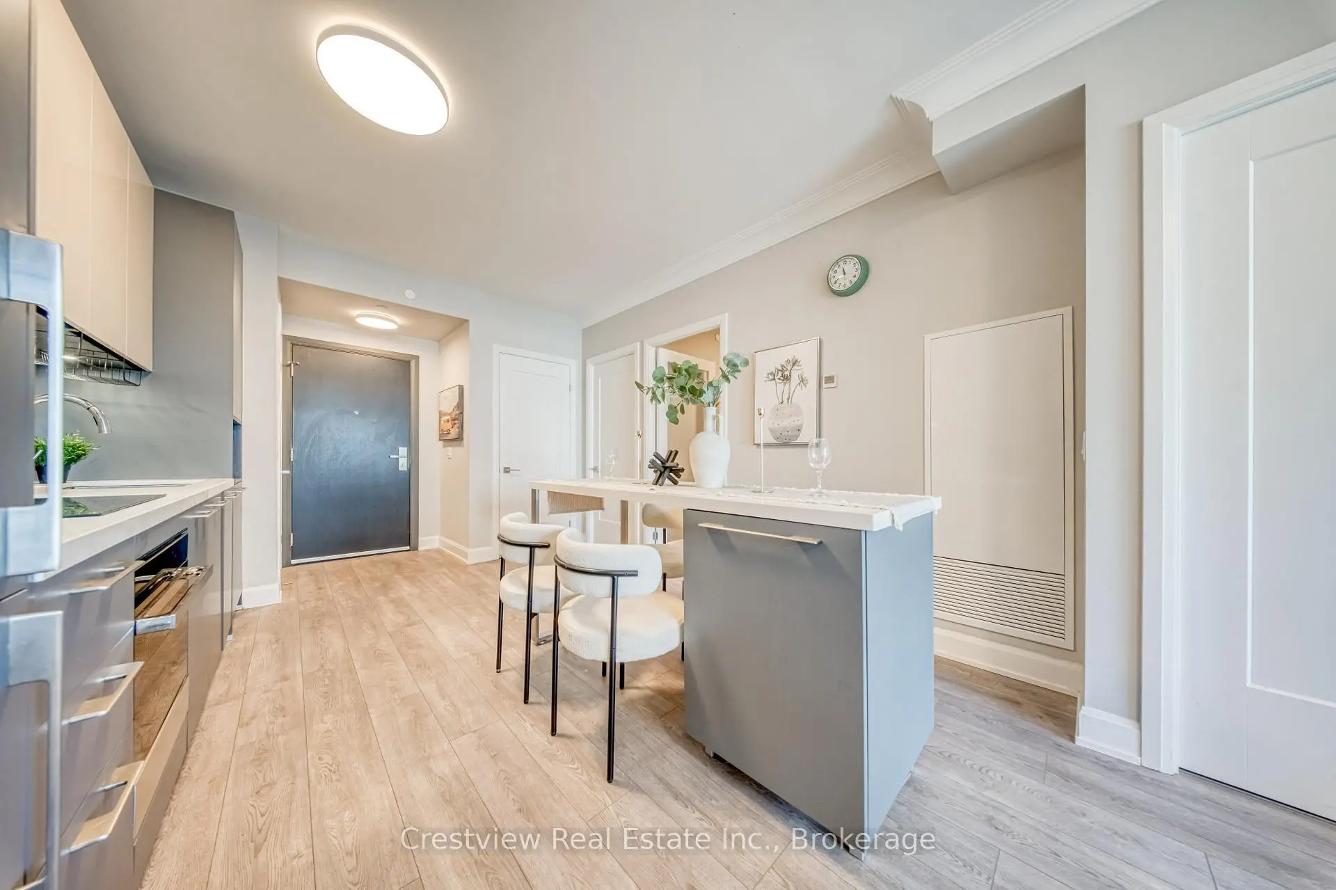 Welcome to Riverview Condos, a 3-year-old building nestled in the heart of Downtown Markham! This spacious 625 sq. ft. one-bedroom + den offers a versatile layout, with the den perfect for a home office or a second bedroom. Functional and open concept design with no wasted square footage, featuring floor-to-ceiling windows that overlooks the building's courtyard. The modern kitchen features upgraded cabinets, countertops, & built-in stainless steel appliances, a sleek backsplash, and movable island that adds flexibility for cooking, dining, or entertaining. Enjoy access to premium amenities, including an indoor pool and sauna, fully equipped gym, yoga studio, library, games room, party room, rooftop terrace, car wash, 24-hour concierge, visitor parking, and free Rogers Wi-Fi. The building is ideally located just steps from a variety of restaurants, shops, medical and dental clinics, pharmacies, recreation centres (Pan Am and YMCA), York University's Markham campus, Cineplex, and major grocery stores like No Frills, Whole Foods, T&T, and Freshway. Commuting is a breeze with YRT and TTC transit at your doorstep, Unionville GO Station minutes away, and easy access to Highways 407 and 404.