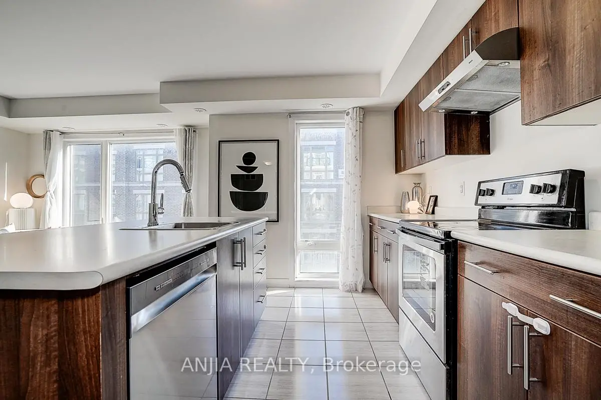 Located In Cornell Area. Modern & Chic 3 Level Stacked Townhouse, Bright, Modern & Open Concept. Oak Staircase, Laminate Throughout - No Carpet. Kitchen With 4 Appliances (New Dishwasher) And Island/Breakfast Bar. Huge Rooftop Terrace, comfort and convenience. This home is maintained by original owner. Corner unit with Bright and airy open concept offers a modern and functional space for hosting everyday living! built cabinets providing plenty of storage and convenience. Premium Roof Terrace w/extra glass panels, perfect for both relaxation and entertaining, oversize window . One parking and one locker. Move-in Condition & perfect home for 1st time buyer, young family or down-sizing.