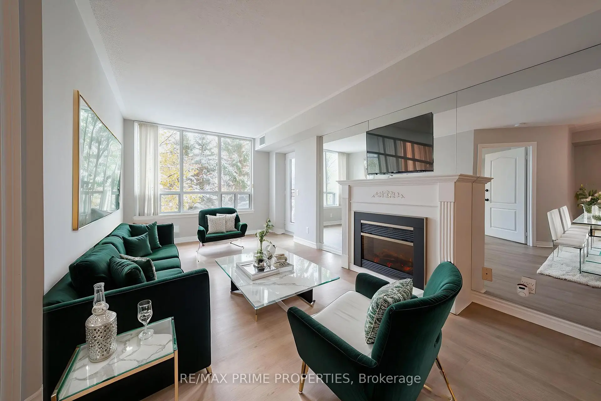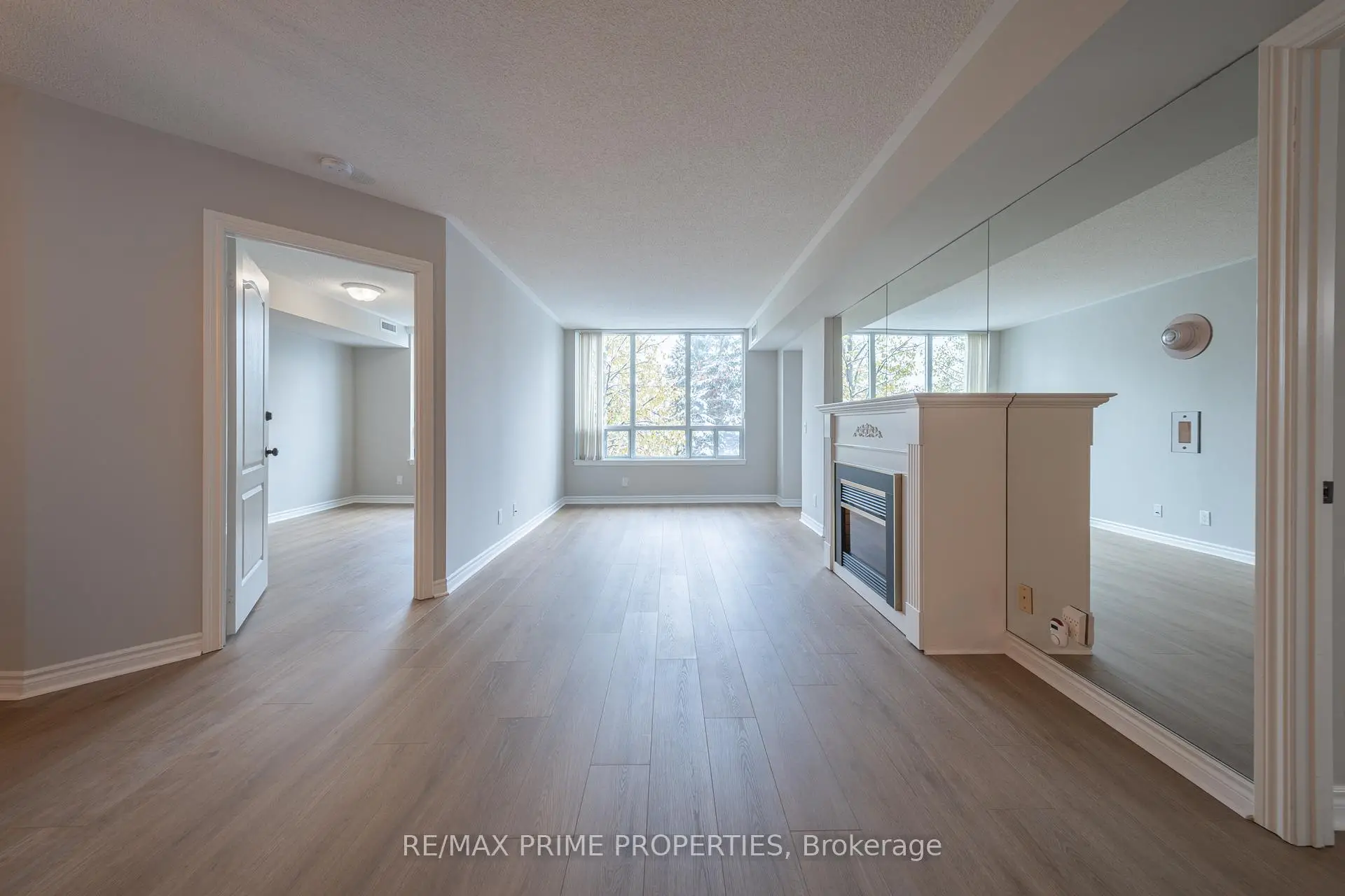 A fresh new lifestyle awaits at 85 The Boardwalk Way #320, where comfort, community, and convenience come together. This bright and beautifully updated 2-bedroom suite features brand-new hardwood floors throughout and a spacious open-concept living and dining area accented by south-facing windows, a cozy fireplace, and a private balcony with peaceful treetop views. The eat-in kitchen offers new stainless-steel appliances, updated lighting, generous pantry storage, and a convenient pass-through to the dining area-perfect for everyday living or hosting. A dedicated laundry room with extra storage adds everyday ease.The private primary bedroom includes a walk-in closet and a 4-piece ensuite, while the second bedroom provides flexibility for guests, hobbies, or a home office. Additional perks include a EV-ready underground parking, and a locker located just steps from the elevator for easy access. Swan Lake is known for its unmatched resort-style amenities and vibrant adult lifestyle community. Residents enjoy outdoor pools, tennis courts, walking trails, plus a 16,000 sqft. Clubhouse featuring an indoor saltwater pool, fitness facilities, and a variety of social and recreational spaces. Peace of mind comes with 24/7 gatehouse security and well-maintained grounds that invite relaxation year-round. Maintenance fees provide outstanding value, covering Rogers Ignite TV, high-speed internet, water, building insurance, and full use of all community amenities. Whether you're looking to right-size or simply elevate your lifestyle, this thoughtfully designed suite offers the perfect blend of tranquility, community and convenience-an exceptional opportunity within one of Markham's most sought-after neighbourhoods.