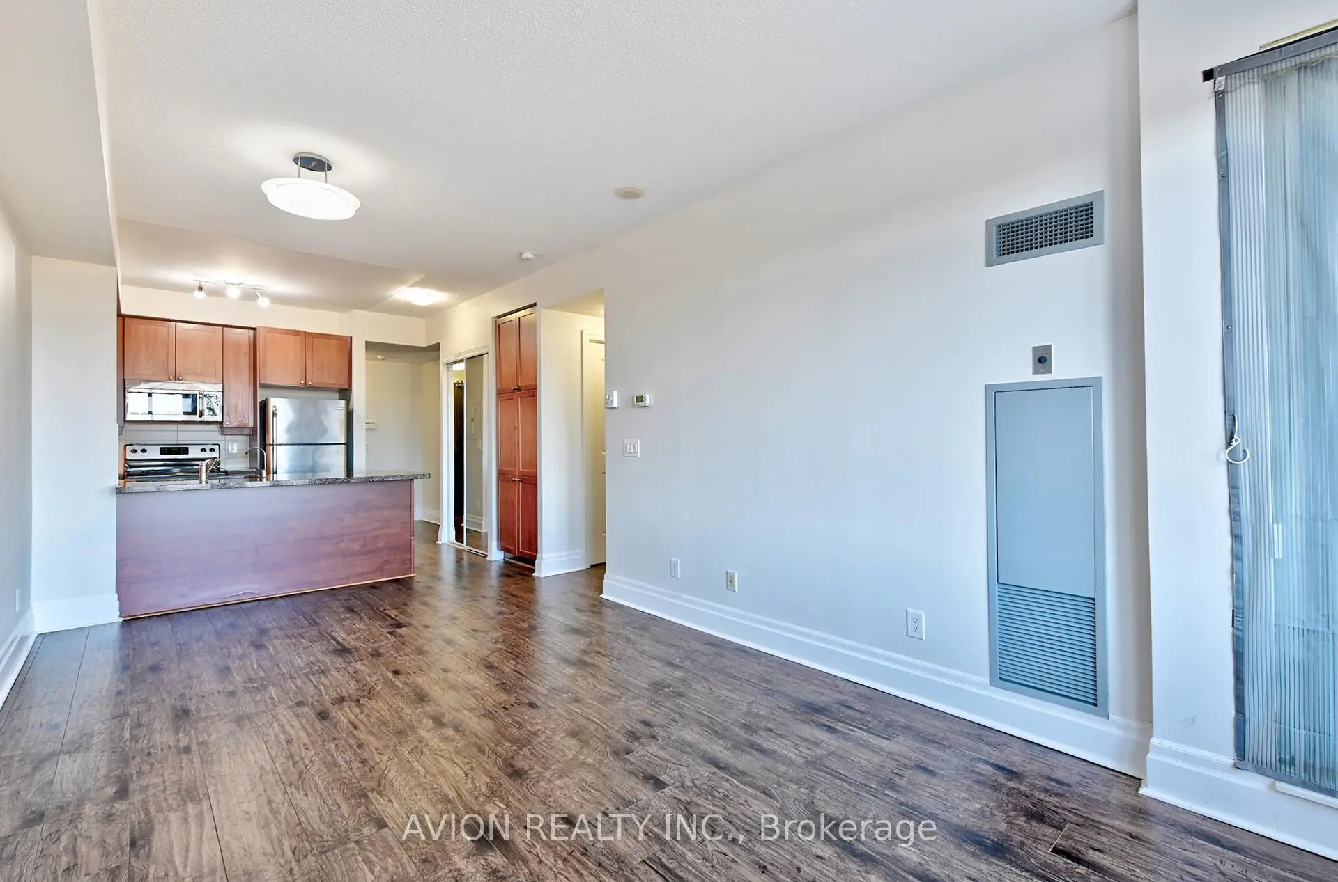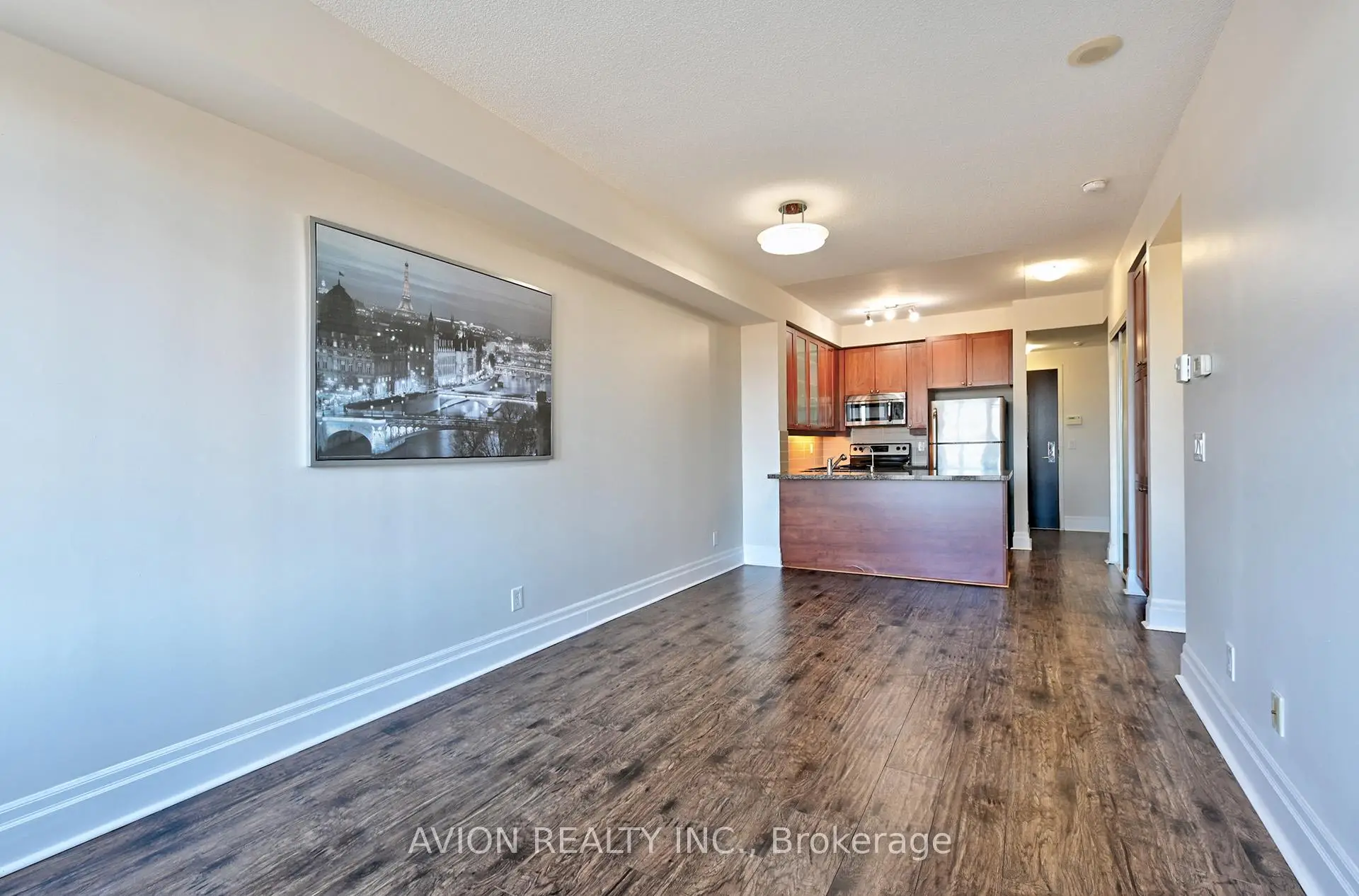 Welcome To This Immaculately Upgraded 1 Bedroom + Den Condo Offering 675 Sq Ft Of Functional Living Space In One Of Markham's Most Sought-After Communities. This bright, inviting suite features a completely unobstructed wide-open view and a private balcony that fills the home with natural light. 9 ft ceilings run throughout, enhancing the spacious and modern feel.The entire suite has been freshly painted, upgraded with brand-new high-quality engineered laminate flooring, and professionally deep-cleaned - truly move-in ready. All appliances are in excellent, like-new condition; the dishwasher and oven have never been used.The modern kitchen stands out with a large central island, perfect for cooking, dining, and entertaining. It is also upgraded with an AquaKing multi-stage RO water purification system, providing clean, purified drinking water and healthier living.The versatile den can function as a home office or easily convert into a second bedroom. A beautifully tiled balcony adds a refined outdoor touch.Residents enjoy resort-style amenities, including an indoor pool, fitness centre, party room, and 24-hour concierge. Steps to the future York University Markham Campus, Cineplex VIP, restaurants, cafés, grocery stores, and all the conveniences of downtown Markham. Easy access to Hwy 407, GO Transit, and Viva Transit.