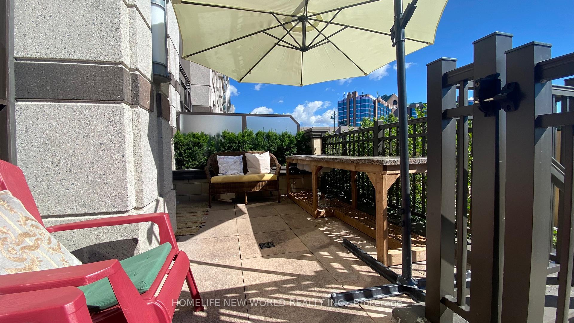 Absolutely Stunning 7 Yrs New Luxurious 3 Bedroom Plus Den & 3 Full Bath 2-Storey Condo Townhouse In The Heart Of Markham. ** Enjoy The Private And Spacious Unit Along With The Luxurious Amenities Of Condo Life.** 10Ft Ceiling Through-out Main & Second Flr. Luxury Electric Blinds Through-out. Main Floor Large Open Concept With Walk Out To Patio, Facing East Future Hugh Municipal Park. Modern Quartz Countertop Kitchen W/Hugh Eat-In Breakfast Island. Plenty Of Storage Space. Primary Bedroom With W/I Closet, 3Pc Ensuite And Walk Out To Balcony. All Good Sized Bedrooms With Large Windows. Upstairs Laundry Room. Top School Zone, Unionville H.S & Parkview P.S. Steps To Park, Heart Of Downtown Markham Restaurants, Offices, Yrt, Go Station, Hwy 404/407, York U Campus. **One Parking Spot & One Locker.**Don't miss this opportunity!
