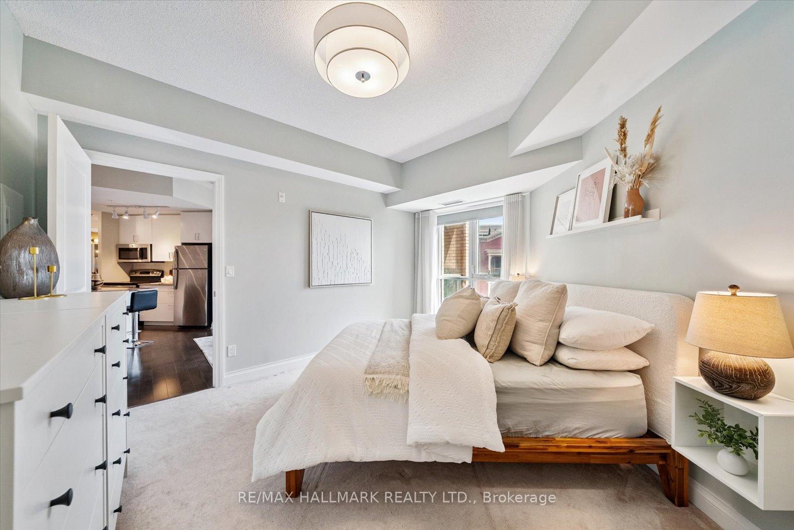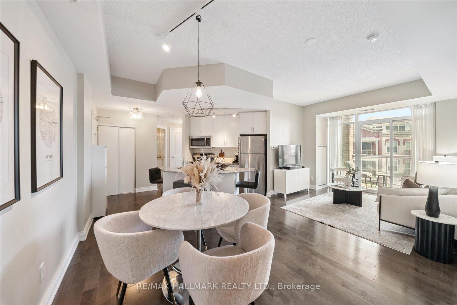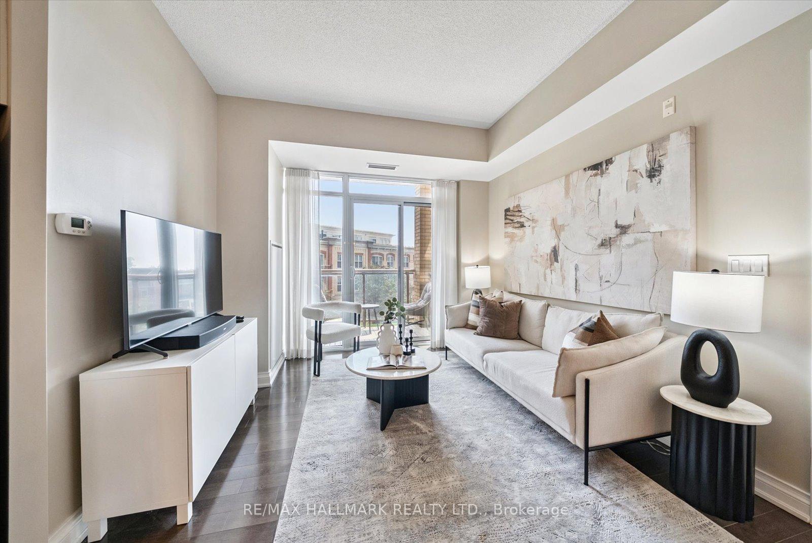 **OPEN HOUSE SATURDAY JAN 10, 2026 @ 2-4 PM ***Experience the charm of Main Street living in this bright and stylish boutique condo, where modern design meets small-town warmth. With soaring 9-foot ceilings, southern exposure, and an open-concept layout, this suite offers both sophistication and comfort in one of Markham's most desirable communities. Ideally located in the heart of historic Main Street Markham, you're just steps from cozy cafes, boutique shops, bakeries, restaurants, and scenic walking trails. Spend your weekends enjoying farmers' markets, sipping coffee on sunny patios, or taking peaceful strolls by Milne pond, all just minutes from your door. The modern kitchen features stone countertops, a breakfast bar, and stainless steel appliances, opening seamlessly to the bright living and dining area. Step onto your private balcony to take in beautiful southern views and glowing sunsets, the perfect spot to unwind at the end of the day. The spacious primary bedroom offers a large window, a walk-in closet, and a spa-inspired 4-piece ensuite, combining elegance with everyday comfort. Residents also enjoy access to a rooftop terrace with gardens, patio seating, and BBQs, an unbeatable feature for entertaining or relaxing outdoors. For commuters, the Markham GO Station is just minutes away, offering easy access to downtown Toronto while allowing you to return home to the peaceful charm of Main Street living. This boutique condo captures the perfect balance of lifestyle and location offering modern luxury, walkable convenience, and a community you'll love to call home.
