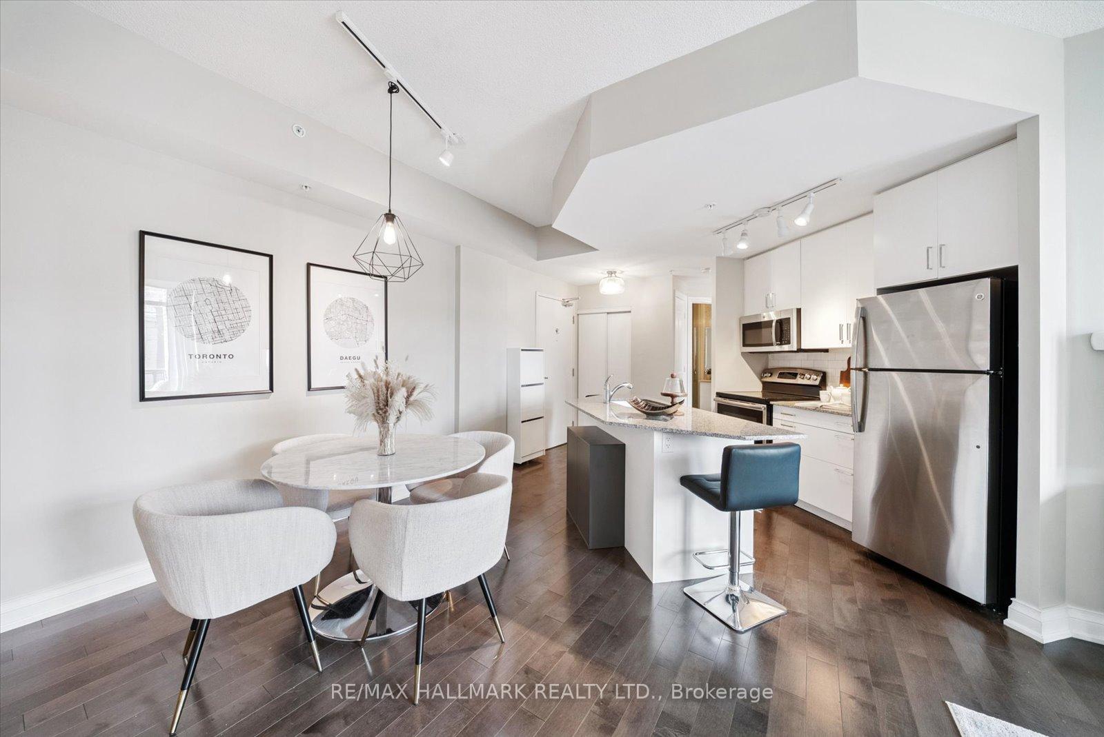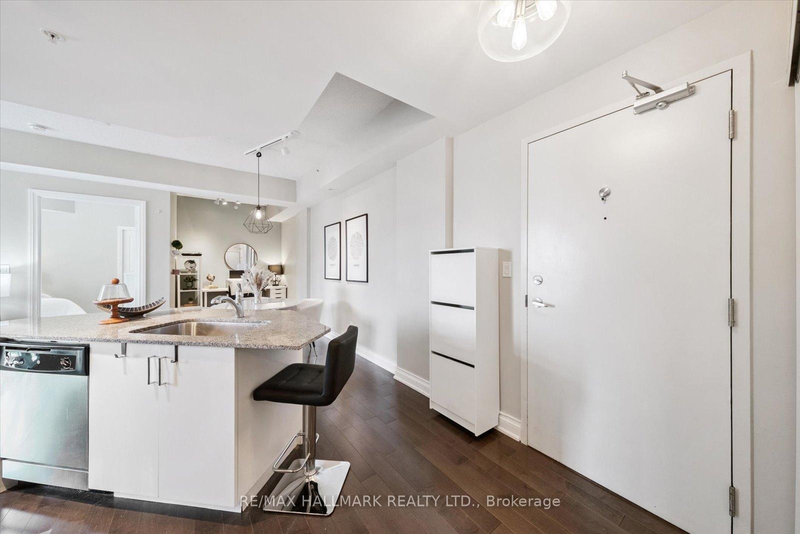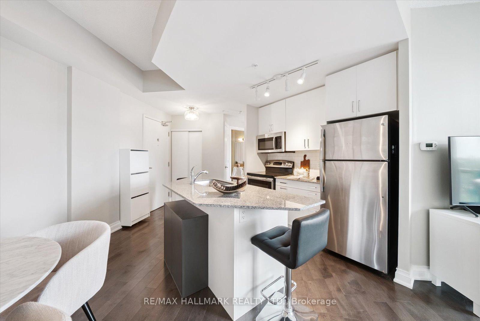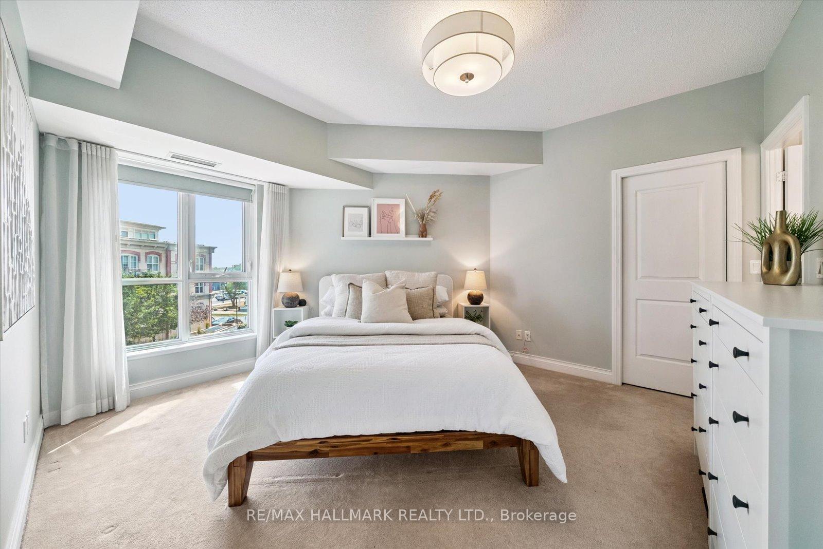 **OPEN HOUSE SATURDAY JAN 10, 2026 @ 2-4 PM ***Experience the charm of Main Street living in this bright and stylish boutique condo, where modern design meets small-town warmth. With soaring 9-foot ceilings, southern exposure, and an open-concept layout, this suite offers both sophistication and comfort in one of Markham's most desirable communities. Ideally located in the heart of historic Main Street Markham, you're just steps from cozy cafes, boutique shops, bakeries, restaurants, and scenic walking trails. Spend your weekends enjoying farmers' markets, sipping coffee on sunny patios, or taking peaceful strolls by Milne pond, all just minutes from your door. The modern kitchen features stone countertops, a breakfast bar, and stainless steel appliances, opening seamlessly to the bright living and dining area. Step onto your private balcony to take in beautiful southern views and glowing sunsets, the perfect spot to unwind at the end of the day. The spacious primary bedroom offers a large window, a walk-in closet, and a spa-inspired 4-piece ensuite, combining elegance with everyday comfort. Residents also enjoy access to a rooftop terrace with gardens, patio seating, and BBQs, an unbeatable feature for entertaining or relaxing outdoors. For commuters, the Markham GO Station is just minutes away, offering easy access to downtown Toronto while allowing you to return home to the peaceful charm of Main Street living. This boutique condo captures the perfect balance of lifestyle and location offering modern luxury, walkable convenience, and a community you'll love to call home.