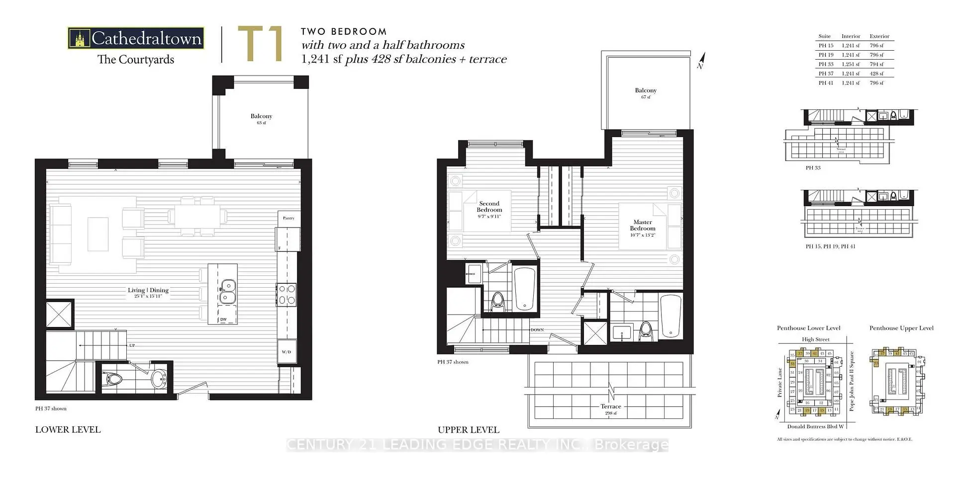 Building Is Registered! Move In Ready! Live In Elegant Architecture Of The Courtyards In Cathedral town! European Inspired Boutique Style Condo 5-Storey Bldg. Unique Distinctive Designs Surrounded By Landscaped Courtyard/Piazza W/Patio Spaces. Penthouse Is 1241Sf Of Gracious Living W/ 2 Bedrooms & 2.5 Baths + W/O Balcony and Walk-Out Terrace On The Upper Floor. Close To A Cathedral, Shopping, Public Transit & Great Schools In A Very Unique One-Of-A-Kind Community. Amenities Incl:Concierge, Visitor Pkg, Exercise Rm Party/Meeting Rm And Much More! **EXTRAS** S/S Package Incl: Fridge; Stove; B/I Dishwasher; Stacked(White) Washer/Dryer, Standard Finishes - Imported Italian Cabinets, Granite/Marble/Ceramics/Porcelain Floors/Laminate Flooring, 9Ft Ceilings, 1 Parking + 1 Locker Included.