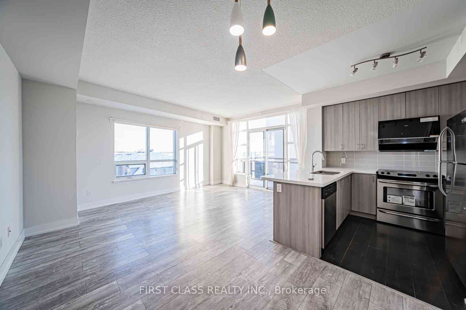 A rare corner suite that truly stands out in the heart of Berczy. Offering 1,005 sq ft of sun-filled living space, this beautifully designed 2+1 bedroom, 2-bathroom home delivers comfort, style, and everyday convenience. Featuring a highly functional split-bedroom layout with zero wasted space, the suite boasts 9-ft ceilings, large windows, and a bright, open atmosphere throughout. The contemporary kitchen is finished with quartz countertops, stainless steel appliances, and upgraded cabinetry. Both bedrooms are generously sized and thoughtfully separated for privacy, while the spacious den is ideal for a home office or study. Move-in ready and located in an exceptional school district: Stonebridge Public School and Pierre Elliott Trudeau High School. Everyday essentials are right across the street-FreshCo, Shoppers Drug Mart, restaurants, banks, and transit just steps away. Only minutes to Markville Mall and Mount Joy GO Station. Building amenities include concierge service, rooftop terrace with BBQs, fitness centre, sauna, party room, and more.