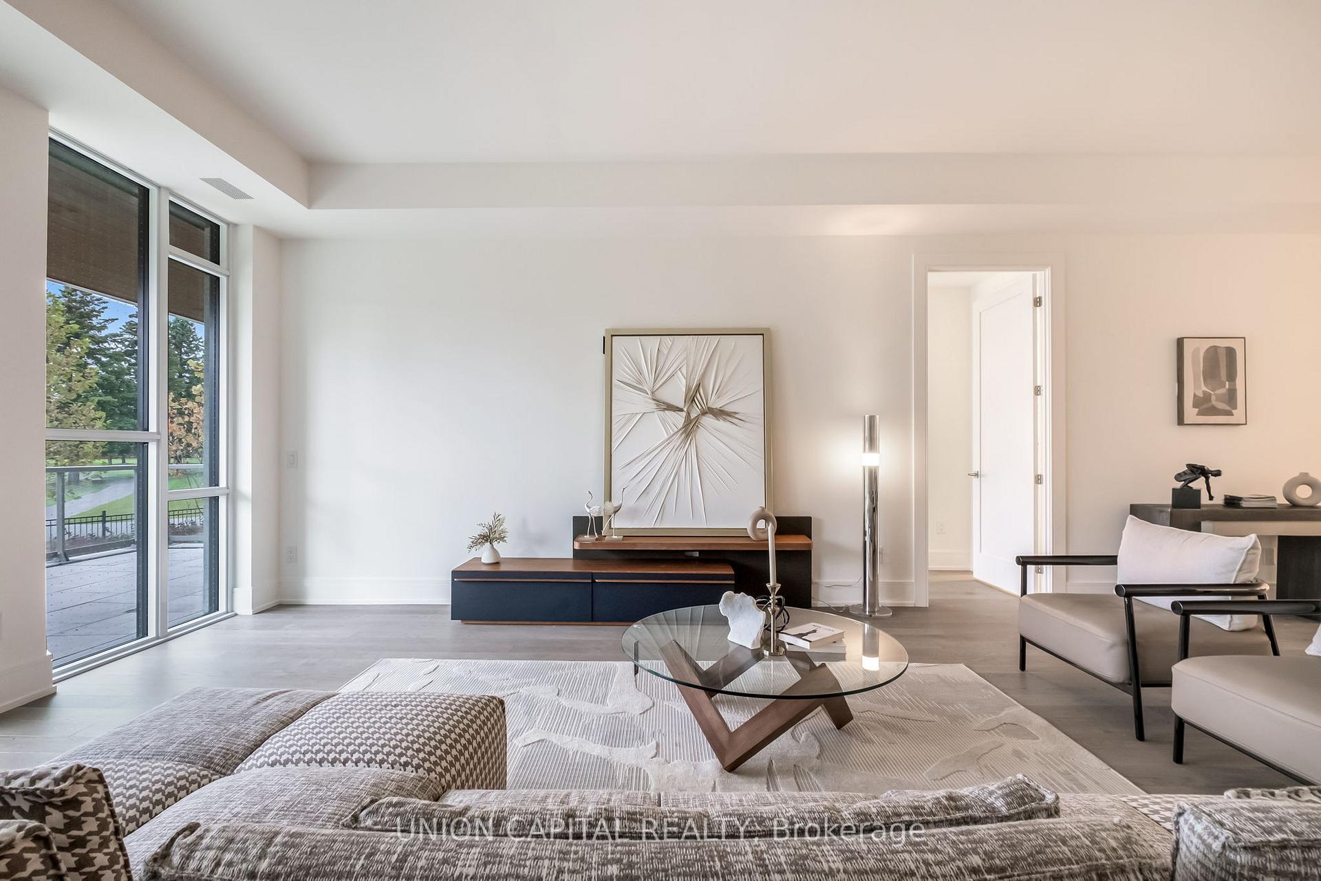 Welcome to Royal Bayview, Thornhill's Most Prestigious New Address by Tridel. Discover refined living in this new and rarely offered garden level suite with golf course views at Royal Bayview, the latest luxury development by Tridel. With over 1,800 sq. ft. of impeccably finished living space, this elegant residence combines sophistication, comfort, and the serenity of nature. Enjoy unparalleled panoramic views of the golf course and tranquil pond, framed by floor-to-ceiling windows and your own expansive private terrace, the perfect retreat for morning coffee or evening entertaining. Inside, the open-concept layout features a chef-inspired kitchen with a large centre island, high-end finishes, and premium appliances. The spacious living and dining areas flow seamlessly, creating a bright, airy ambiance ideal for both everyday living and hosting. Designed with versatility in mind, this unit includes a dedicated den/home office, two generous bedrooms, and three luxurious bathrooms, including a spa-like primary ensuite. Additional highlights include Resort-style amenities including an indoor swimming pool, fitness centre, saunas, outdoor patio, and a stylish party room in a landmark building. Experience the ultimate blend of luxury and lifestyle at Royal Bayview where every detail has been thoughtfully crafted for the discerning homeowner.