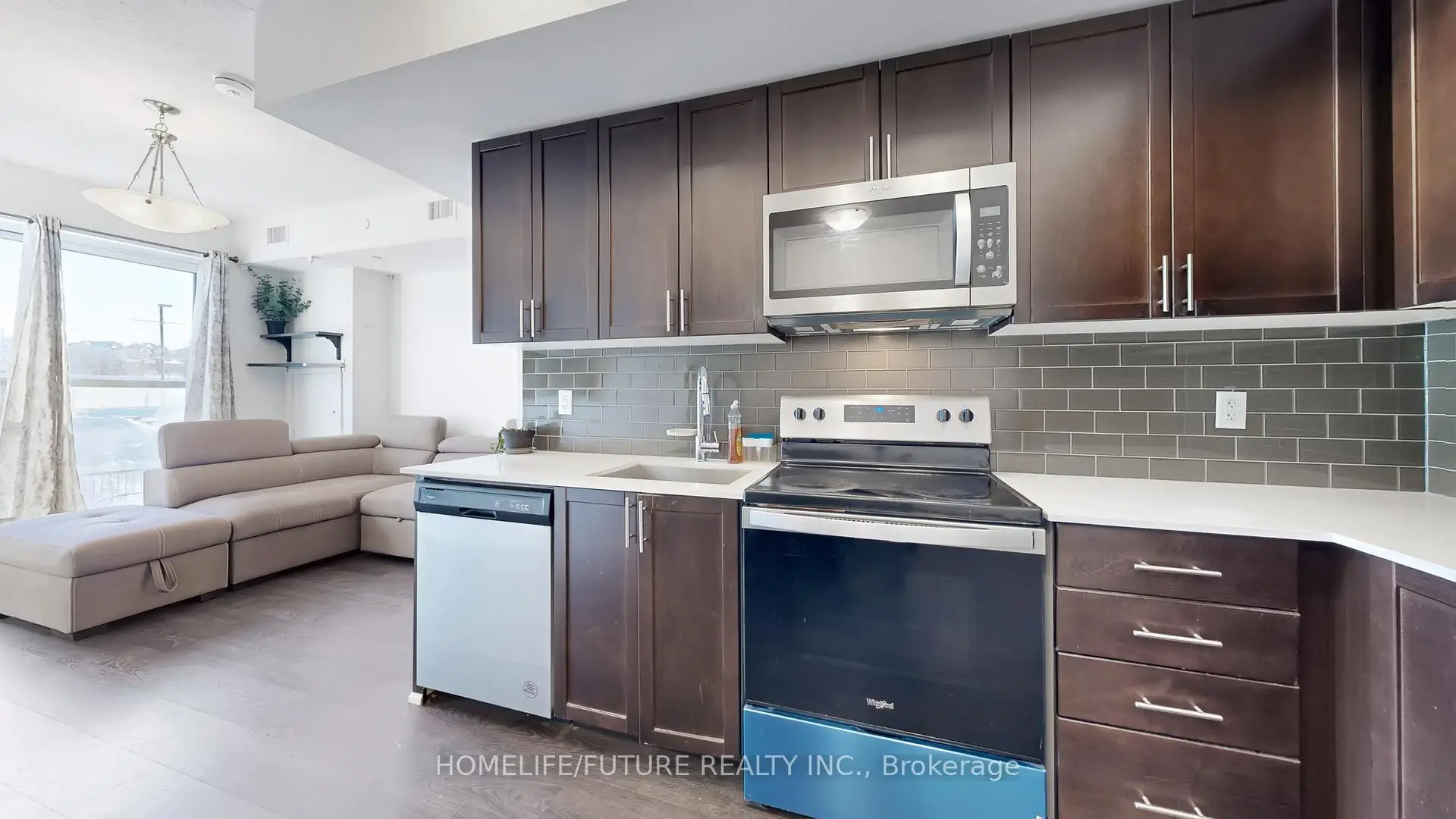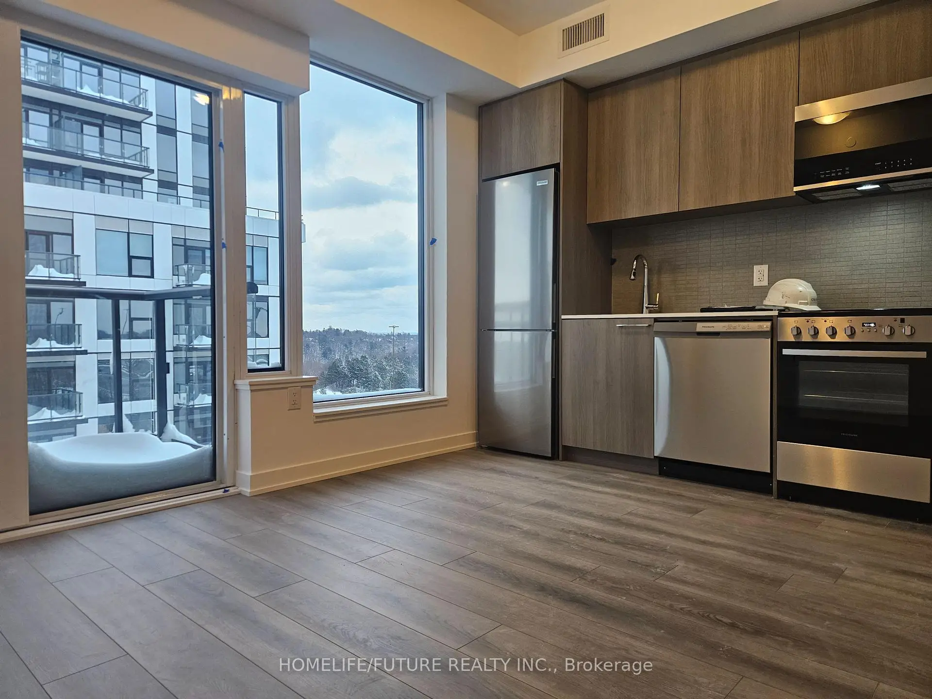 Stunning corner unit 2-Bedroom, 2-Full Bathroom Unit Featuring a Spacious Open-Concept Living and Dining Area. The modern kitchen is complete with appliances, and sleek laminate flooring runs throughout the unit. Enjoy premium building amenities including 24-hour security, visitor parking, an exercise room, jacuzzi spa, party room, rooftop terrace, and access to a nearby hiking trail. Ideally located just steps from public transit, close to excellent schools, and approximately 5 minutes from Markham Stouffville Hospital. Conveniently situated near shopping malls, restaurants, banks, and a supermarket.
