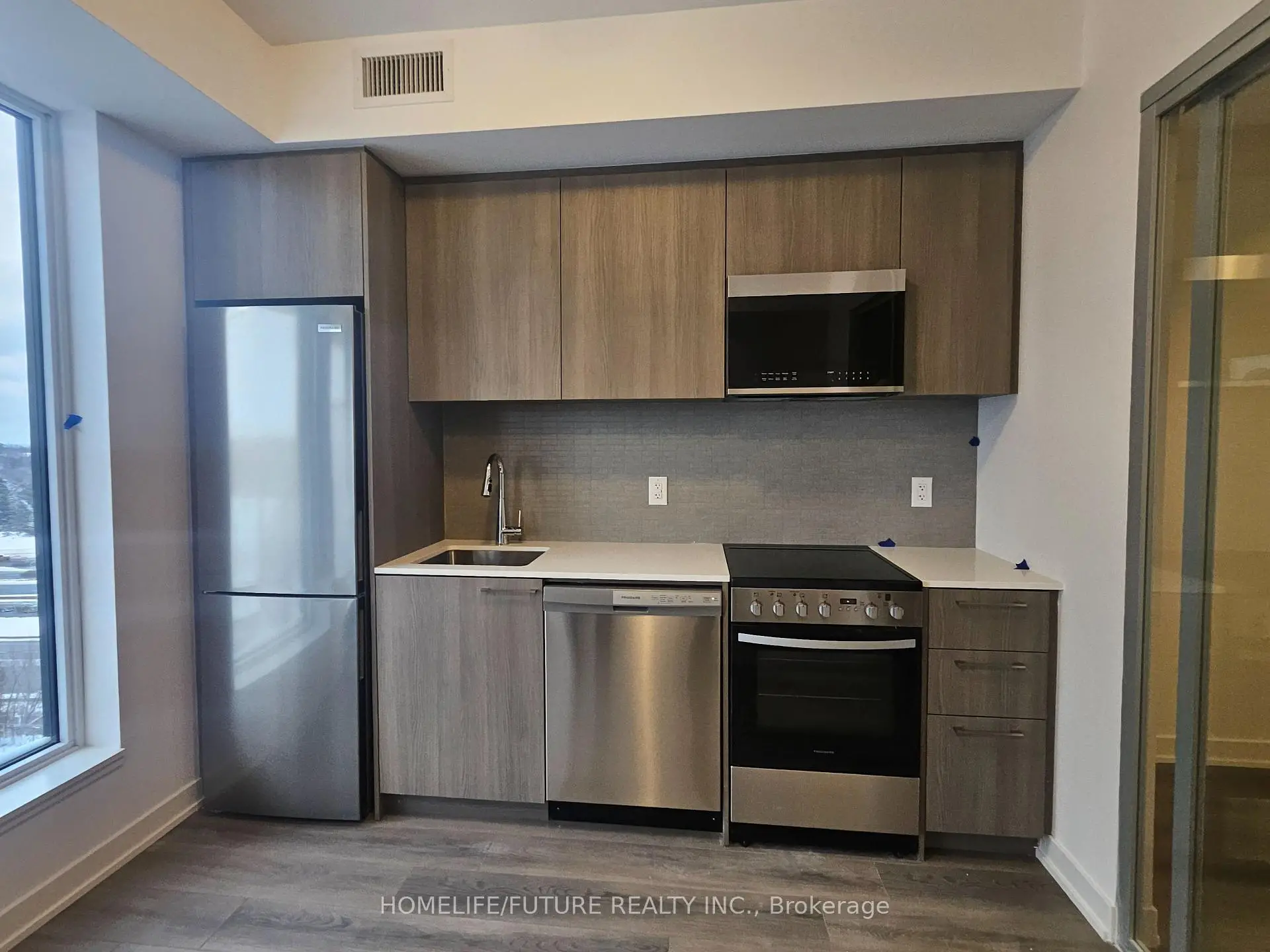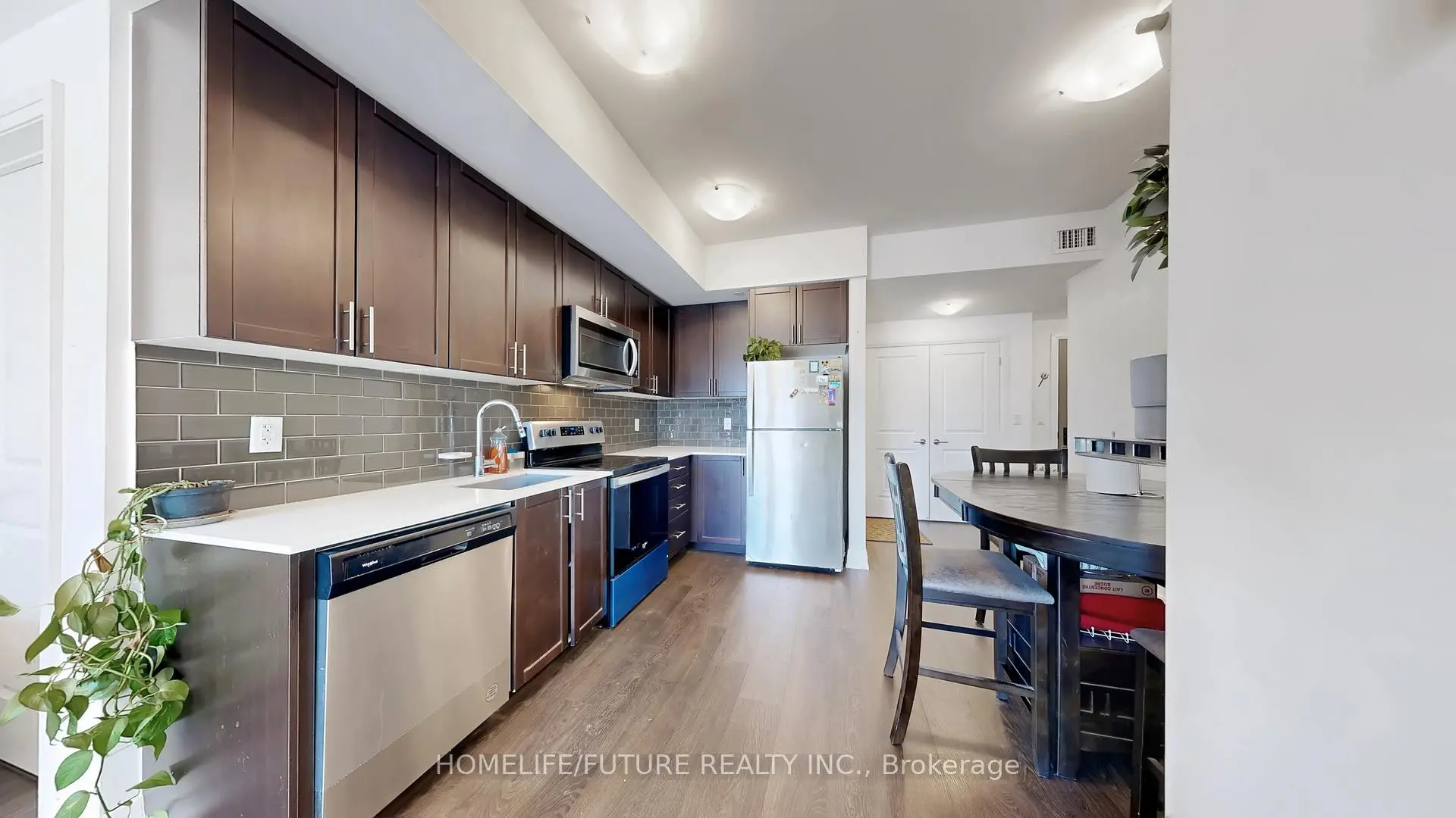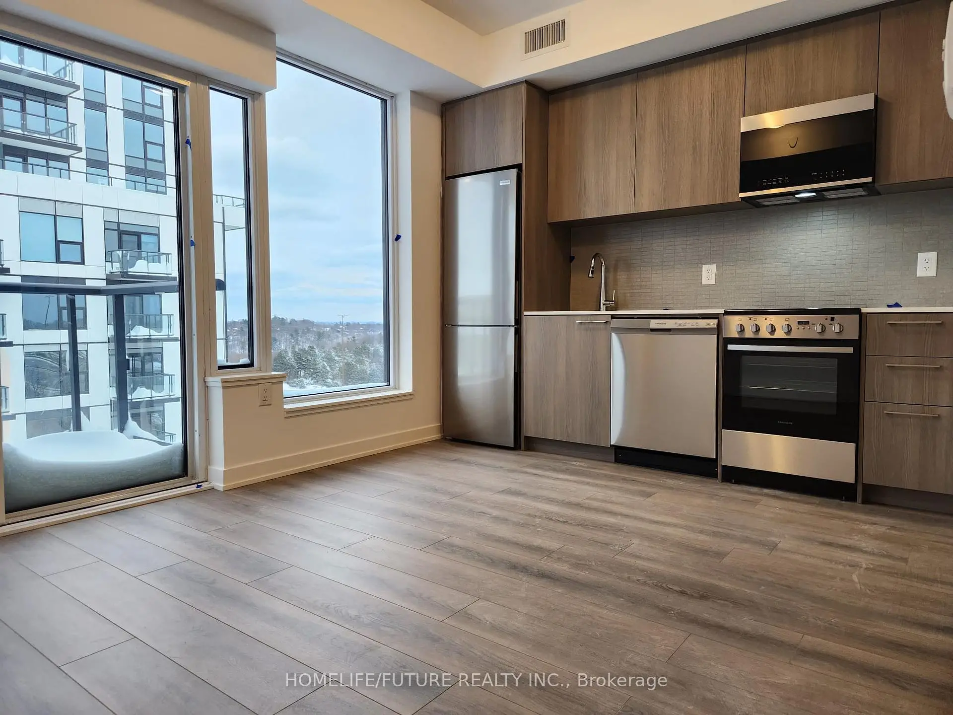 Stunning corner unit 2-Bedroom, 2-Full Bathroom Unit Featuring a Spacious Open-Concept Living and Dining Area. The modern kitchen is complete with appliances, and sleek laminate flooring runs throughout the unit. Enjoy premium building amenities including 24-hour security, visitor parking, an exercise room, jacuzzi spa, party room, rooftop terrace, and access to a nearby hiking trail. Ideally located just steps from public transit, close to excellent schools, and approximately 5 minutes from Markham Stouffville Hospital. Conveniently situated near shopping malls, restaurants, banks, and a supermarket.