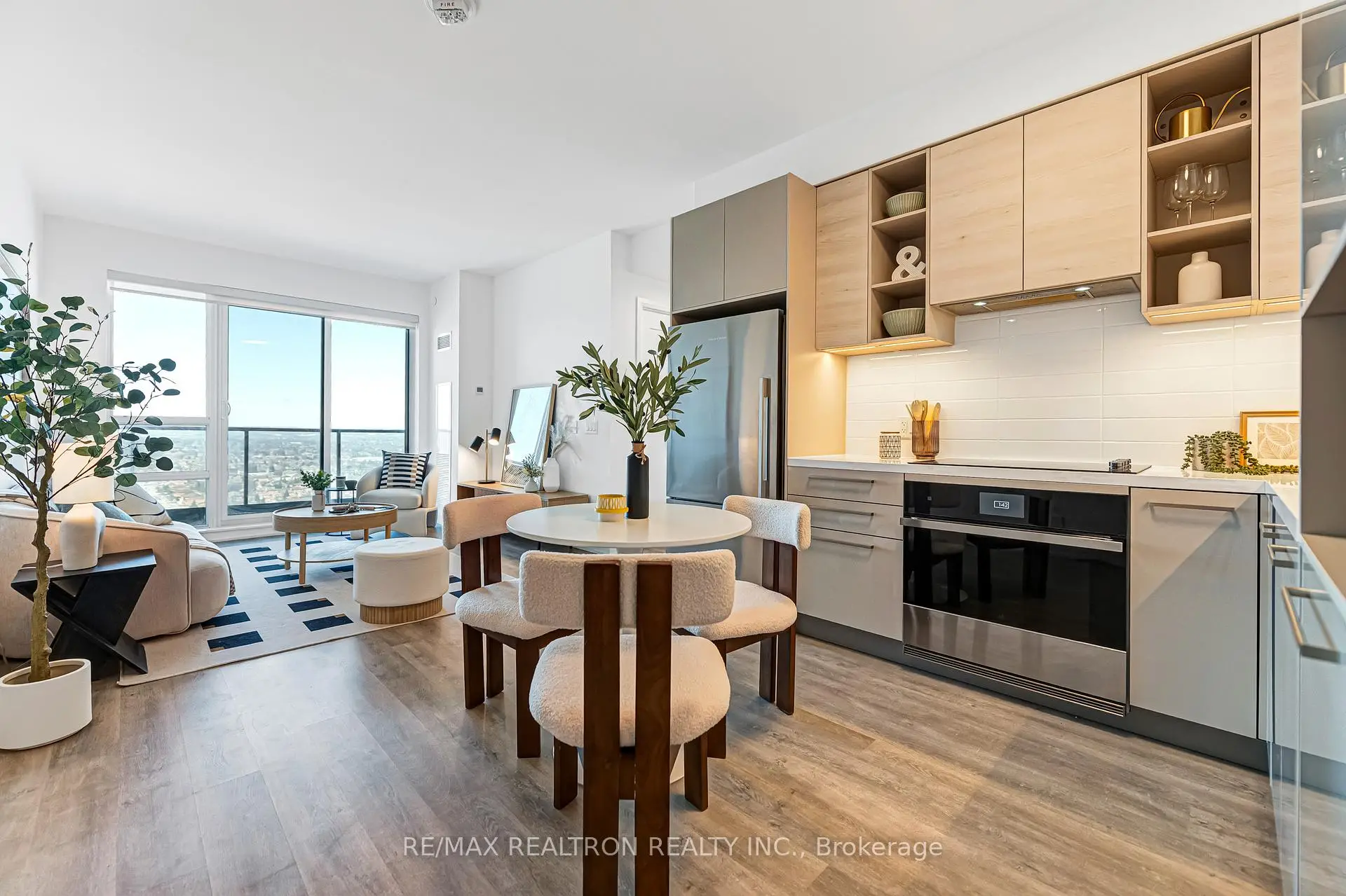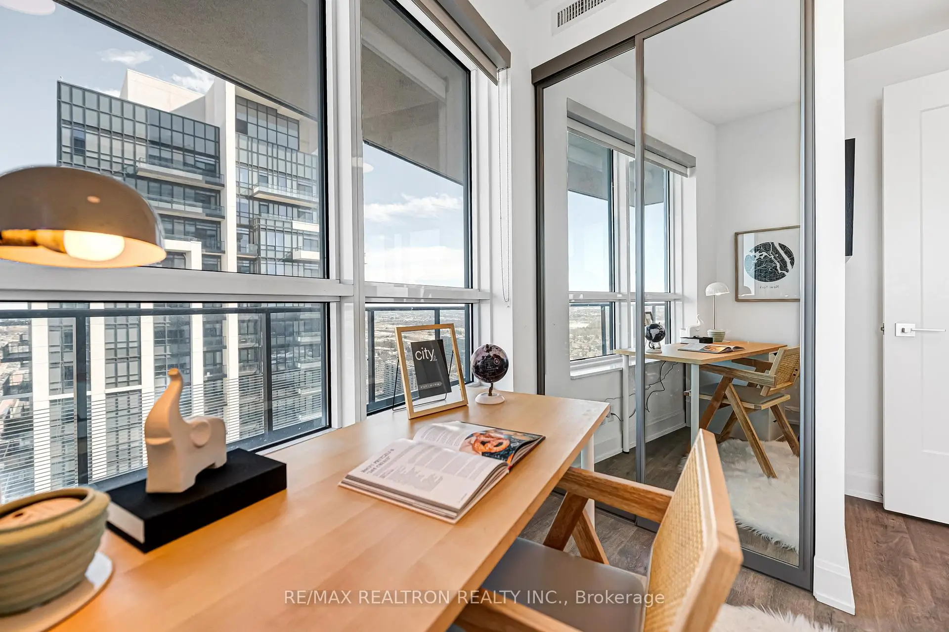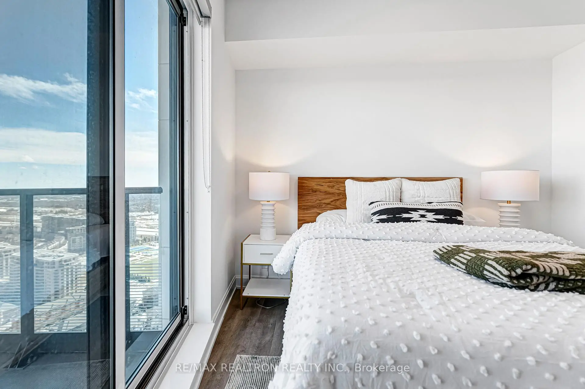 Spacious and modern corner suite at the highly sought-after Pavilia Towers by Times Group. This beautifully designed 2-bedroom, 2-bathroom residence features an expansive wrap-around balcony and offers approximately 1,054 sq. ft. of well-planned living space (810 sq. ft. interior + 244sq. ft. balcony). Rarely offered with 2 parking spaces (including 1 upgraded EV parking spot worth approximately $6,000 more than a regular parking space) and 1 locker. The open-concept living and dining area is filled with natural light from ex-large windows and offers seamless walk-out access to the balcony. Enjoy breathtaking, unobstructed panoramic views from the oversized wrap-around outdoor space - perfect for relaxing or entertaining. The sleek contemporary kitchen showcases built-in stainless steel appliances, upgraded quartz countertops, and upgraded cabinetry. The primary bedroom features a large closet, upgraded 3-piece ensuite, and direct walk-out to the balcony. The second bedroom is bright and generously sized, conveniently located next to a 4-piece bathroom. Thoughtfully designed layout with no wasted space. Prime location - steps to Viva Transit and minutes to Hwy 404 & 407, Times Square, grocery stores, restaurants, and top-rated schools including Thornlea Secondary School. Resort-style amenities include 24-hour concierge, visitor parking, indoor pool, fitness centre, yoga studio, party room, billiards room, ping pong room, children's playroom, and a beautifully landscaped BBQ terrace.