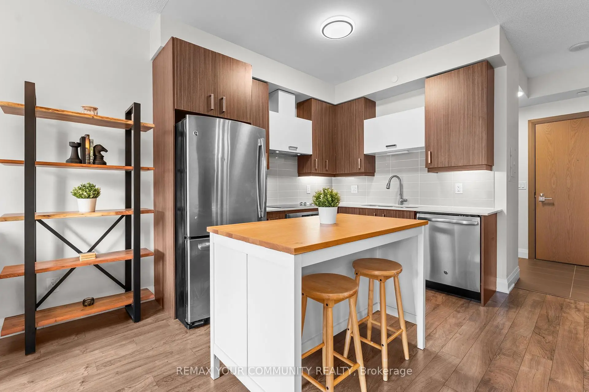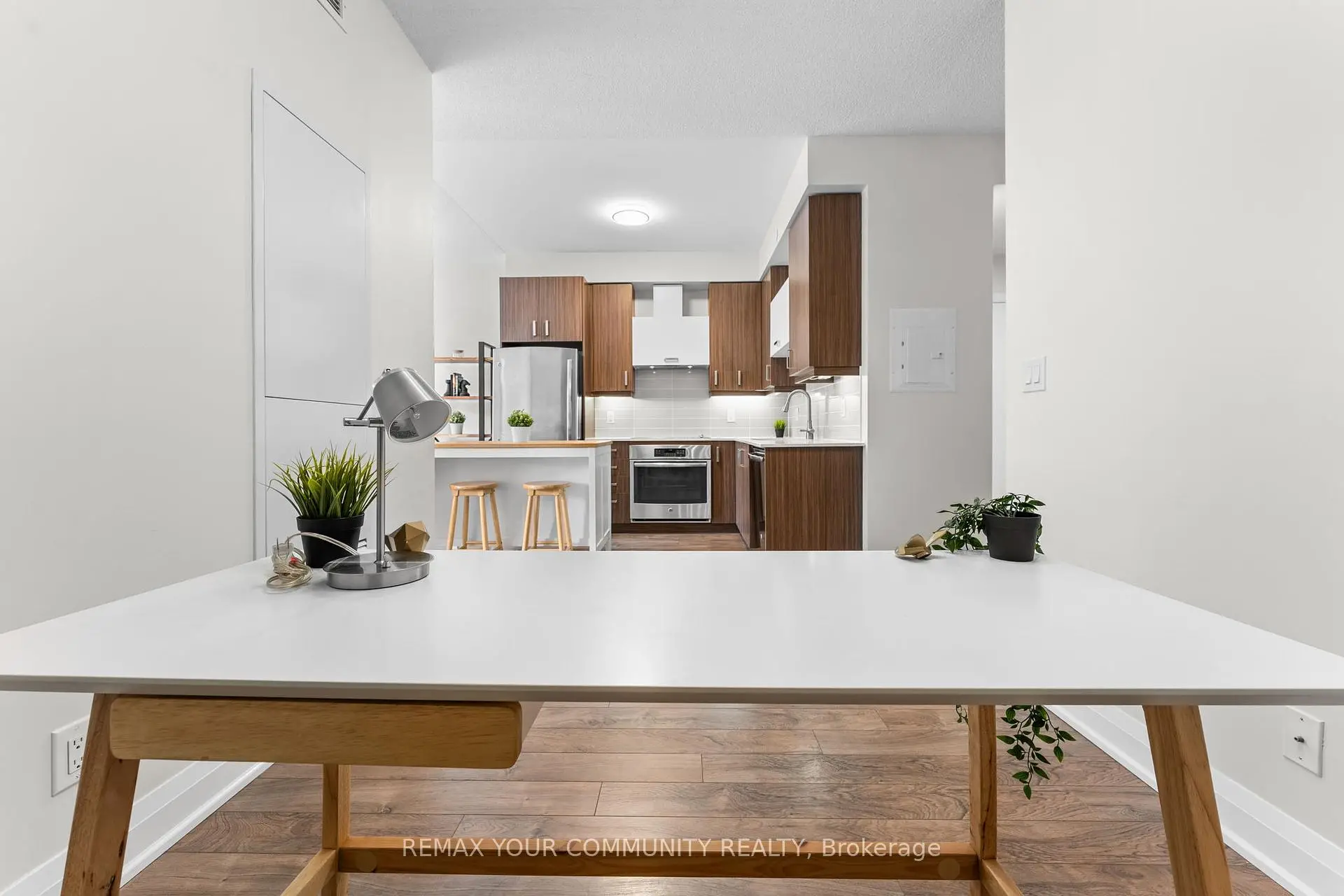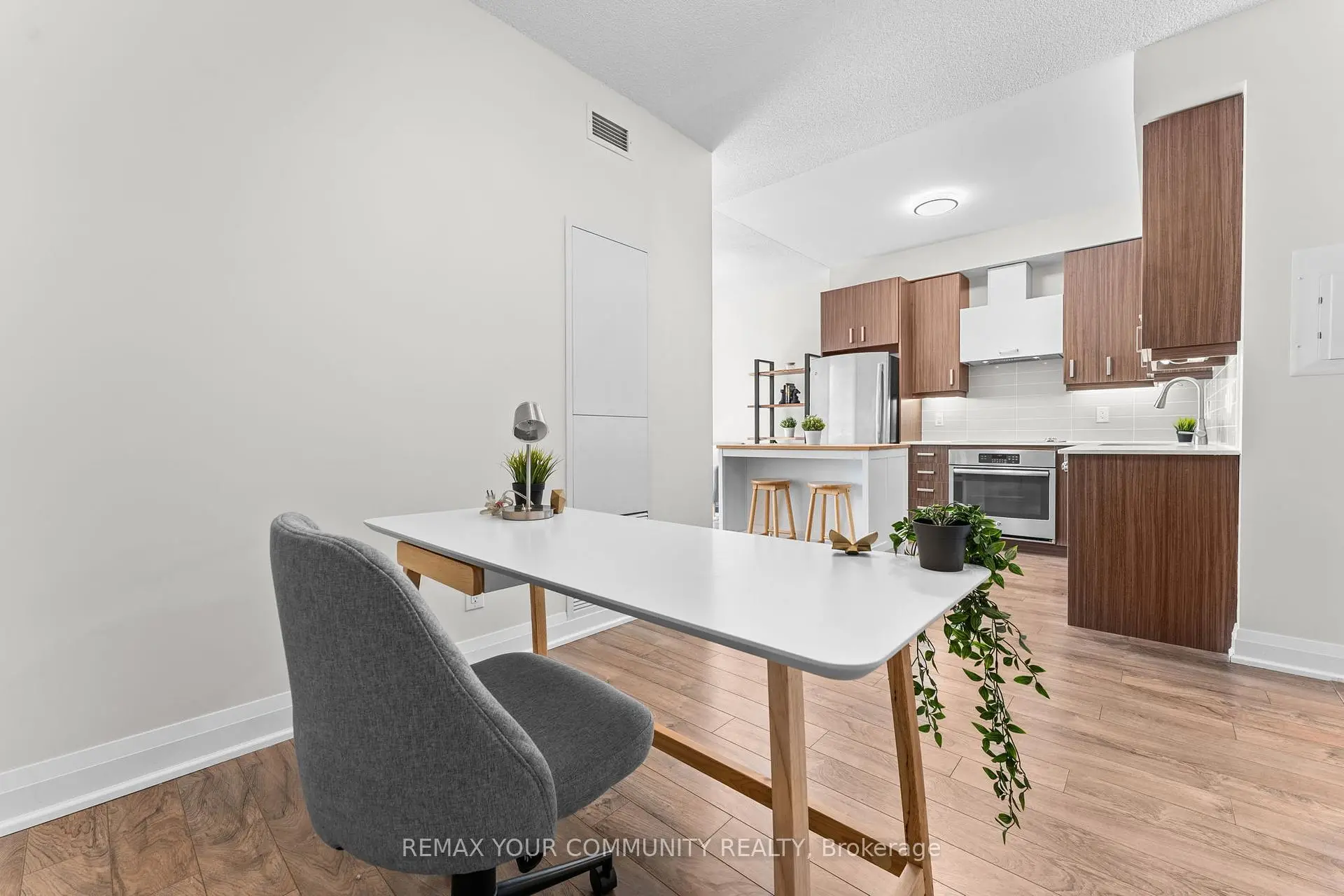 Welcome to Uptown Markham - 28 Uptown Drive, where convenience meets lifestyle. This bright and spacious 1+1 bedroom suite offers 623 sqft of thoughtfully designed living space with 9-foot ceilings and a desirable south-facing exposure, filling the unit with natural light throughout the day. The unit features upgraded flooring throughout, along with tasteful upgrades including modern light fixtures, upgraded faucets, and custom upgraded blinds. The modern kitchen with stainless steel appliances flows seamlessly into the open living and dining area, creating a comfortable space for both everyday living and entertaining. One of the standout features is the rare private balcony that is not shared with neighbouring units, offering added privacy and a peaceful outdoor retreat. The original owners were drawn to this unit for its quiet and convenient location within the building-situated away from the elevator and garbage area for added tranquility, while still offering the convenience of a parking spot located directly in front of the elevator entrance.Located in the vibrant Uptown Markham community, residents enjoy exceptional access to Highway 407 and 404, VIVA and YRT transit, GO Train access, shopping, Whole Foods, restaurants, and the entertainment district of Downtown Markham. A perfect opportunity for young professionals, first-time buyers, or investors seeking a modern condo in one of Markham's most desirable urban communities.