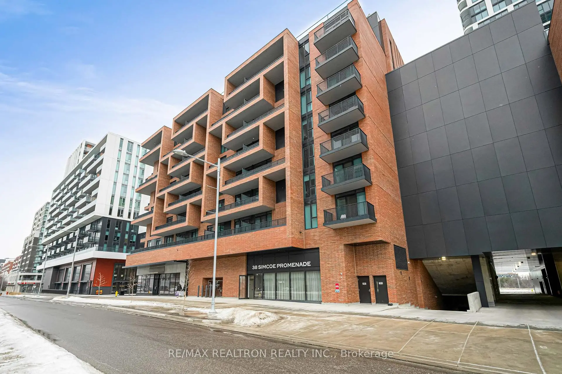 Prime Location At 38 Simcoe Prom! Spacious And Well-Maintained 2+1 Bedroom Condo With One Parking Space. Offering Approximately 943 Sqft Of Interior Living Space Plus A Private Balcony. Bright And Functional Open-Concept Layout Featuring Floor-To-Ceiling Windows That Fill The Space With Abundant Natural Light. Modern Kitchen With Contemporary Cabinetry, Quality Built-In Appliances, Ample Counter Space And Plenty Of Storage. Generous Living And Dining Area Perfect For Both Everyday Living And Entertaining. Versatile Den Can Easily Function As A Home Office Or Third Bedroom. Two Well-Proportioned Bedrooms Including A Spacious Primary Suite With A Large Closet And Ensuite Bathroom. Two Full Bathrooms With Modern Finishes. Thoughtfully Designed Layout Maximizes Both Space And Comfort. Conveniently Located Steps To GO Station, Viva Transit, Cineplex VIP, T&T Supermarket, Restaurants, Shopping, And Everyday Amenities. Quick And Easy Access To Hwy 407 And Hwy 404 For Seamless Commuting. Building Amenities Include 24/7 Concierge, Fitness Centre, Media Room, Party Lounge, And Visitor Parking. A Rare Opportunity To Own This Beautifully Maintained Corner Suite With Exceptional Outdoor Space. Move-In Ready - Just Move In And Enjoy!