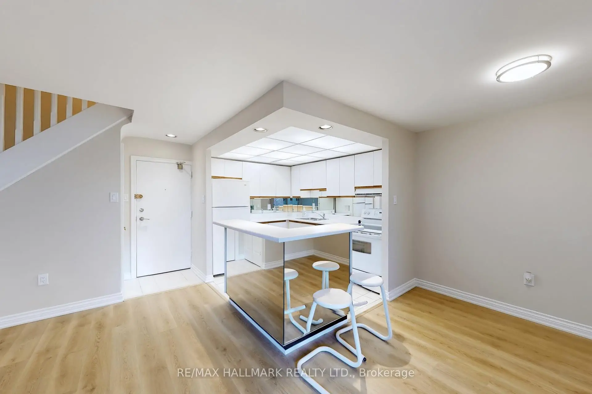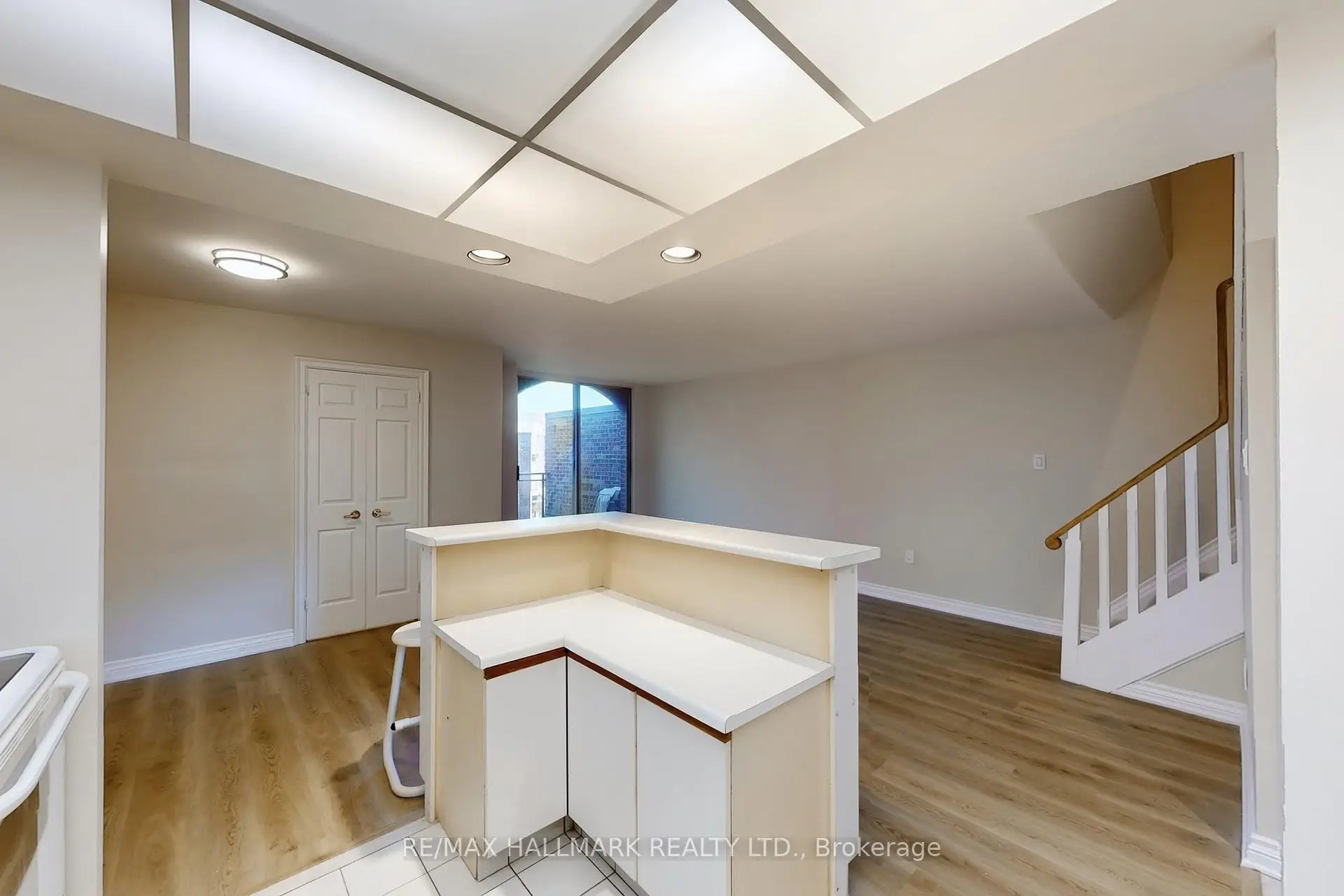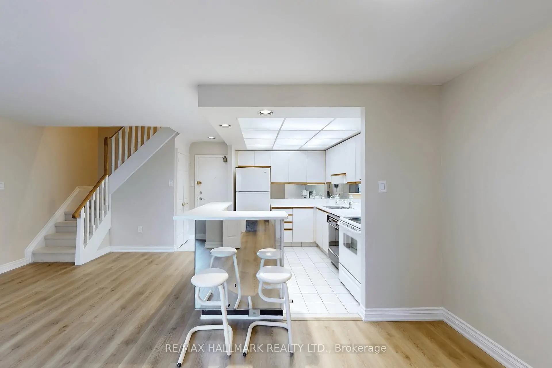 Location! Location! Location! Upgraded Two-Level Condo Apartment Offering Over 1000 Sqft & Two Private Balconies. Perfectly situated just steps from Yonge Street, this upgraded home combines functionality, comfort, and convenience with new flooring and fresh paint throughout. Step into the spacious main level featuring a bright kitchen with ample cabinetry, plenty of counter space, a centre island with breakfast bar, and existing appliances such as fridge, stove, and dishwasher. The open-concept living and dining area is ideal for entertaining, with a seamless walk-out to the main-level balcony. A versatile additional room on this floor offers flexibility as a home office, guest room, or bedroom. Upstairs, the primary suite boasts a large walk-in closet with custom organizers, a 4-piece ensuite with soaking tub and shower, and direct access to a private upper-level balcony. A dedicated laundry room with a full-sized washer and dryer completes the upper level. This unit includes underground parking conveniently located near the elevator. Maintenance fees cover most utilities including hydro, water, heat, cable TV, and internet, delivering excellent value. Residents have access to a range of building amenities including an indoor pool, sauna, recreation room, and visitor parking. Nestled in a prime Thornhill neighborhood, enjoy close proximity to Centrepoint Mall, top-rated schools, parks, public transit, and major highways, making commuting and daily living a breeze. Don't miss this fantastic opportunity to own a spacious condo in a highly sought-after area. Property is being sold as is/where is. **Some photos have been virtually staged.