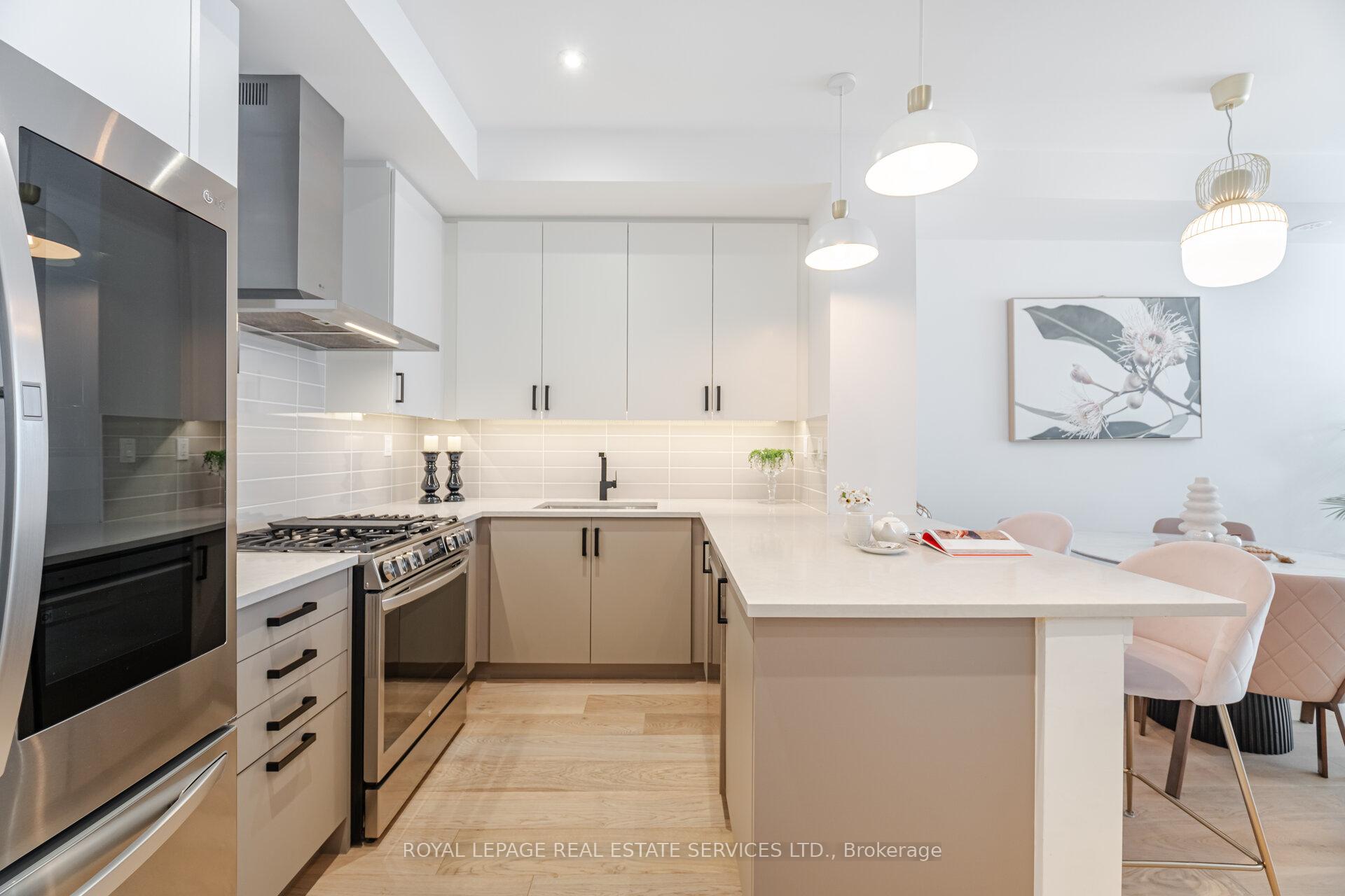 Welcome to one of Streetsville's premier modern luxury townhomes, newly built by Dunpar Homes. Perfectly situated just steps from the GO Station and minutes from charming downtown Streetsville, this home blends exceptional convenience with upscale living. Boasting a long list of high-end upgrades, this residence features wide plank hardwood flooring, quartz countertops, premium stainless steel appliances, smooth ceilings, LED pot lights, and stylish black matte hardware and faucets throughout. Enjoy the rare convenience of 2-car parking with a lift system, and entertain effortlessly on the expansive rooftop terrace offering unobstructed views, a gas BBQ line, water hookup, and a pergola for shaded comfort. Additional standout features include 3 skylights, upgraded 7.5" baseboards, soaring 9.5' ceilings on the main floor, elegant iron pickets, and solid oak stairs.This is modern luxury redefined in the heart of Streetsville. Please refer to the attached features list for full upgrade details.