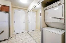 Spacious 2-Bedroom Condo in Central Mississauga. This bright 2-bedroom, 2-bathroom condo offers a functional layout with a large living and dining area that walks out to a private balcony showcasing beautiful city views. The kitchen provides ample cabinet space and a practical design, while the primary bedroom features its own ensuite for added comfort. A second bedroom and in-suite laundry add convenience for families, professionals, or downsizers alike. The condo comes with one parking space and a locker, plus access to exceptional amenities including an indoor pool, gym, party rooms, bowling alley, theatre, and 24-hour concierge. Perfectly located across from Square One, Celebration Square, Sheridan College, and steps to transit with easy highway access, this home combines lifestyle and location in one.