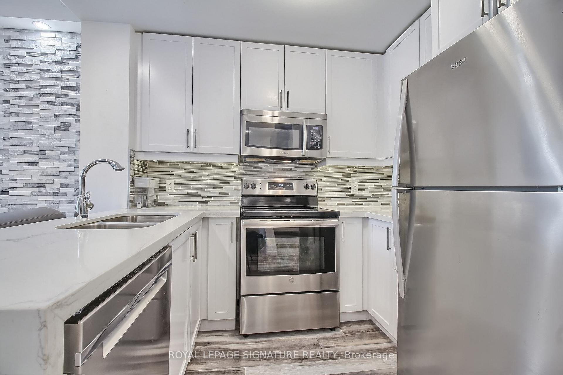 Rare Opportunity To Own A Completely Renovated Luxury 3 Large Bedroom & 2 Spa Like Bathroom Townhome In Famous Absolute Condominium. Undoubtedly The Best Location In Town. 1,230 Sqft T/H, with Stainless Steel Appliances, Newly Upgraded Laminate Flooring on 2nd & 3rd Floor & Stairs, Modern Kitchen with Quartz Counters, Stone Backsplash. One Parking And One Locker Included. Upper Floor Has Patio Doors to Own Private Terrace That Leads To A Huge Communal Beautiful Gardens! Maintenance Fee Includes Heat, Hydro, A/C And Building Insurance. Direct Entrance To Home From Parking. This Unit Is The Only One Of Its Kind On Mls In Absolute. Square One, 403/401/407/QEW, Transit W/D To Future LRT, Stores, Famous Restaurants & More. Heart Of Mississauga Downtown. Minutes Walk From Square One Mall. Minutes Drive To U Of T Mississauga, T&T Supermarket, Golden Square, Chinatown Mississauga. Basketball Court, Pool, Gym, Library, Theatre, Squash, Running Track, Party Room.