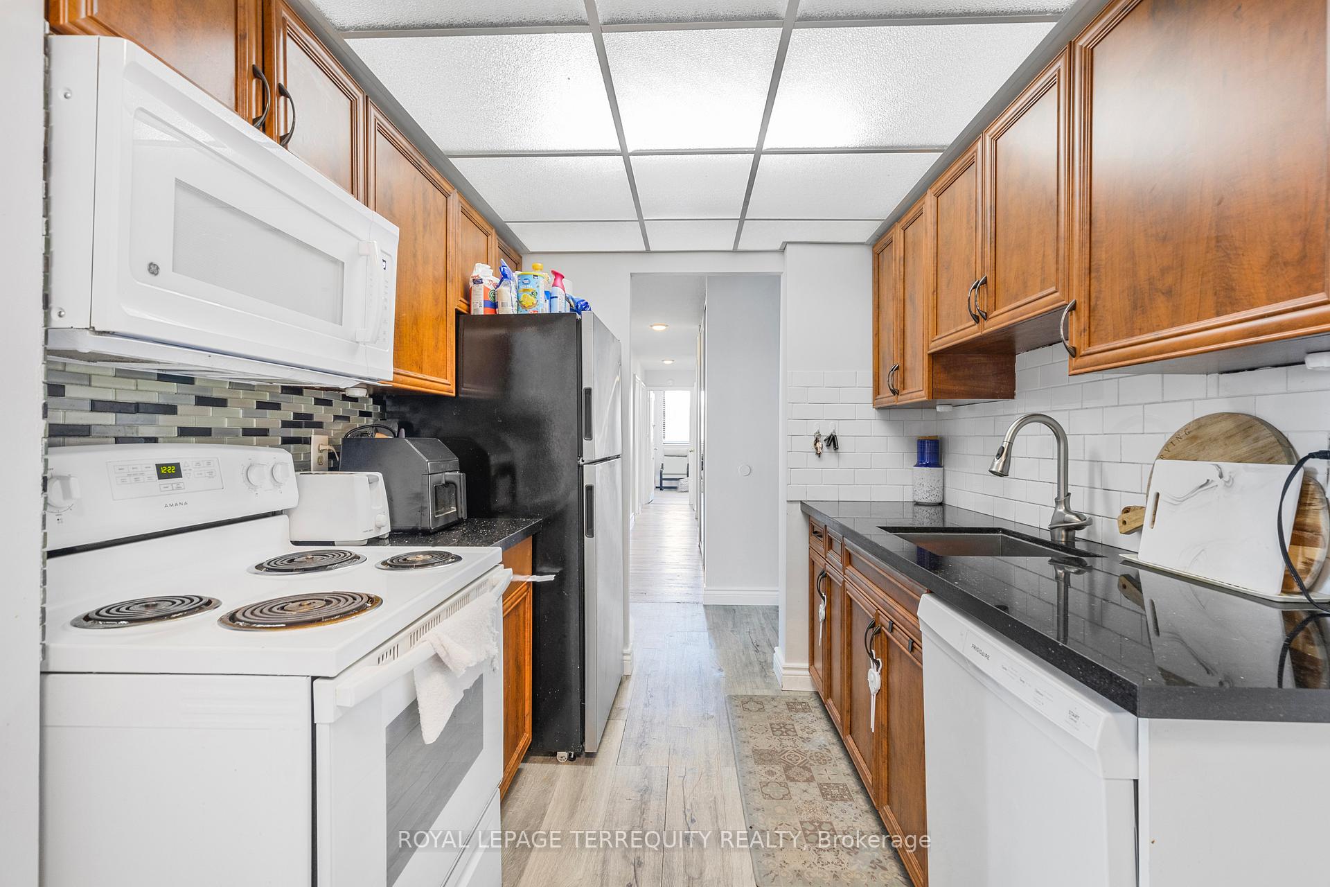 Welcome to this spacious, 1,259 sqft 3bed, 2bath corner suite in Mississauga's Cooksville neighbourhood. The carpet-free interior features laminate flooring throughout, a spacious living/dining area with lots of large windows offering plenty of natural light and a walk out to a large balcony. The eat-in kitchen offers great flow and has plenty of storage. Primary bedroom offers a 2-piece ensuite and ample closet space, while two additional bedrooms provide room for kids, guests, a home office, or all three! En-suite laundry adds everyday convenience. The building is immaculately kept and well managed, with beautifully maintained grounds and a long list of lifestyle amenities: an outdoor pool, tennis courts, a park, multiple BBQ areas, visitor parking and inviting green spaces to unwind. Maintenance fees include heat, water, hydro, underground parking & locker, simplifying monthly budgeting. All of this in a superb, transit-friendly location: minutes to Square One, a quick hop to Cooksville GO, and near major highways (QEW/403/401) for effortless commuting. If you've been searching for space, light, and value in a move-in-ready home, this corner unit delivers!